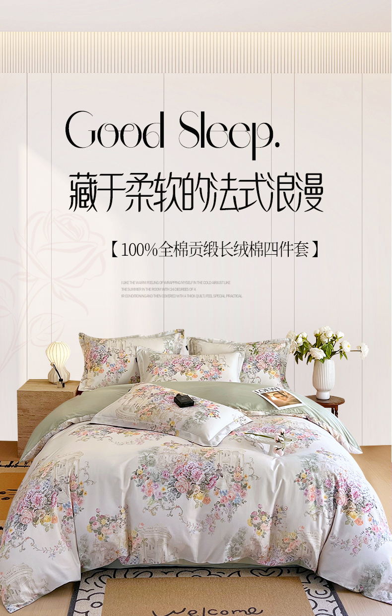 商品名称:梧桐树 2025新款100%全棉60S长绒棉套件 S37暮光-绿