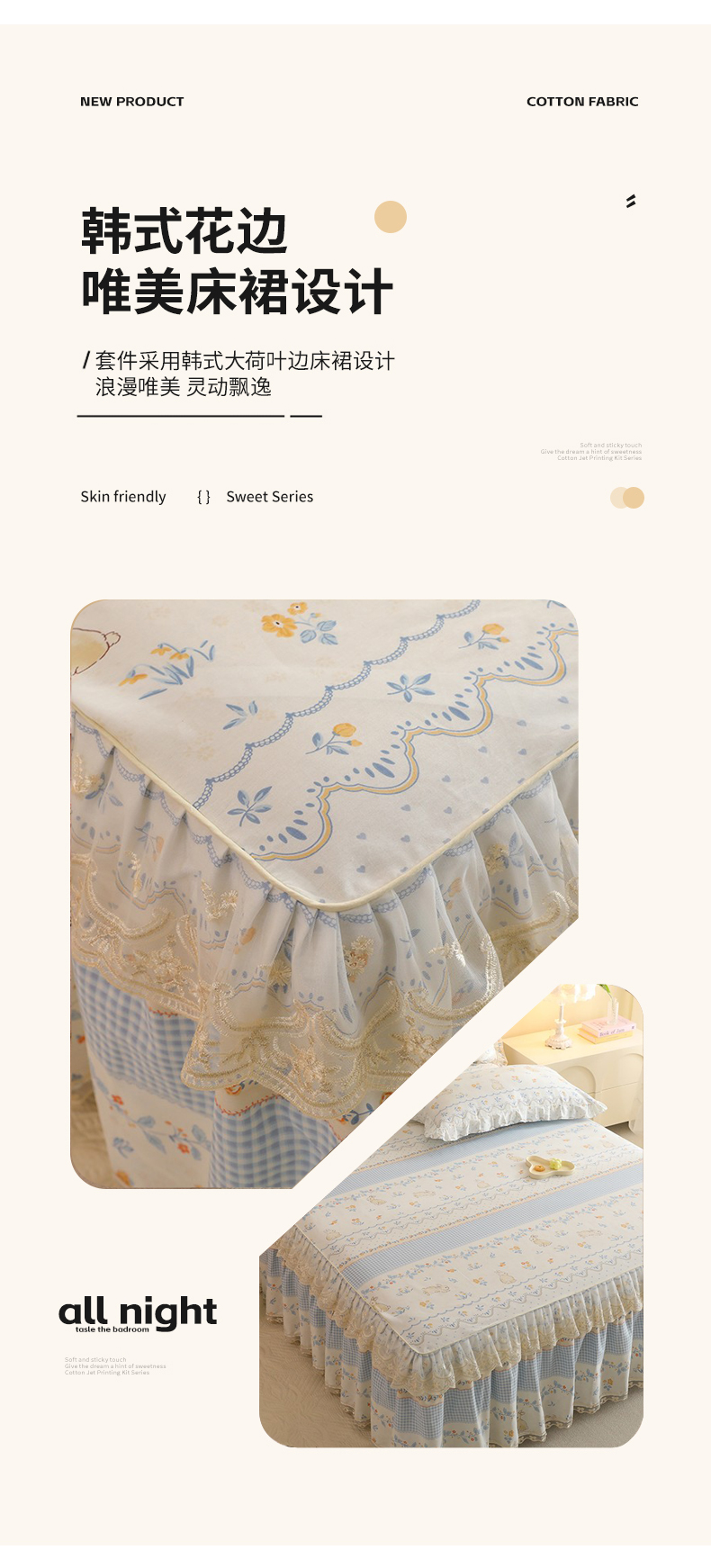 (总)美达家纺 2025新款全棉纯棉AB版蕾丝小花边单层床裙四件套,解语花,南湘,沁雨花叶,悦棠