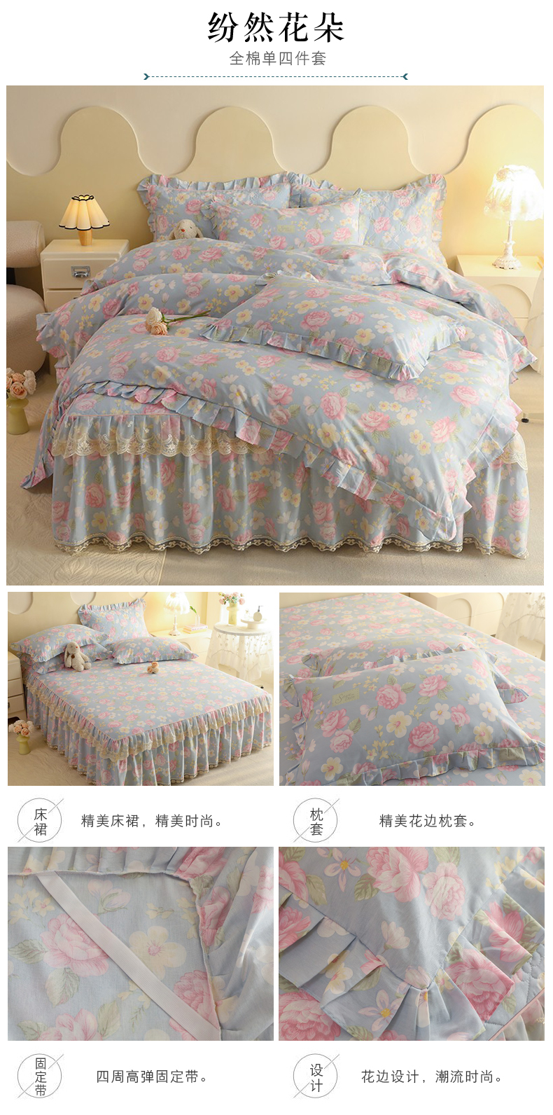 商品名称:美达家纺 2025新款全棉印花床裙四件套 夏花依旧