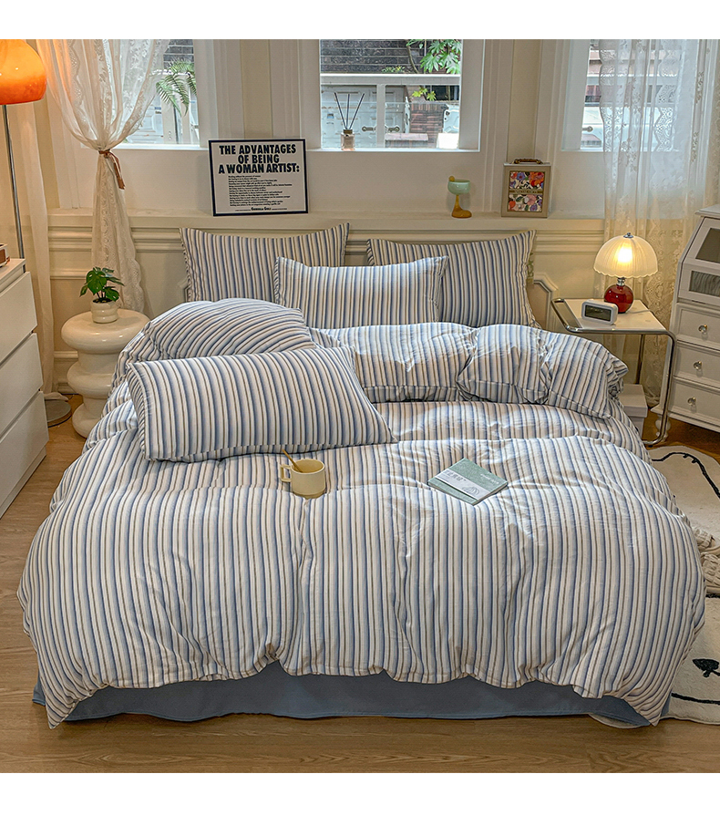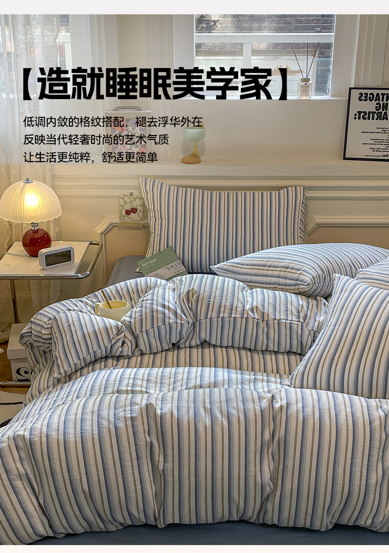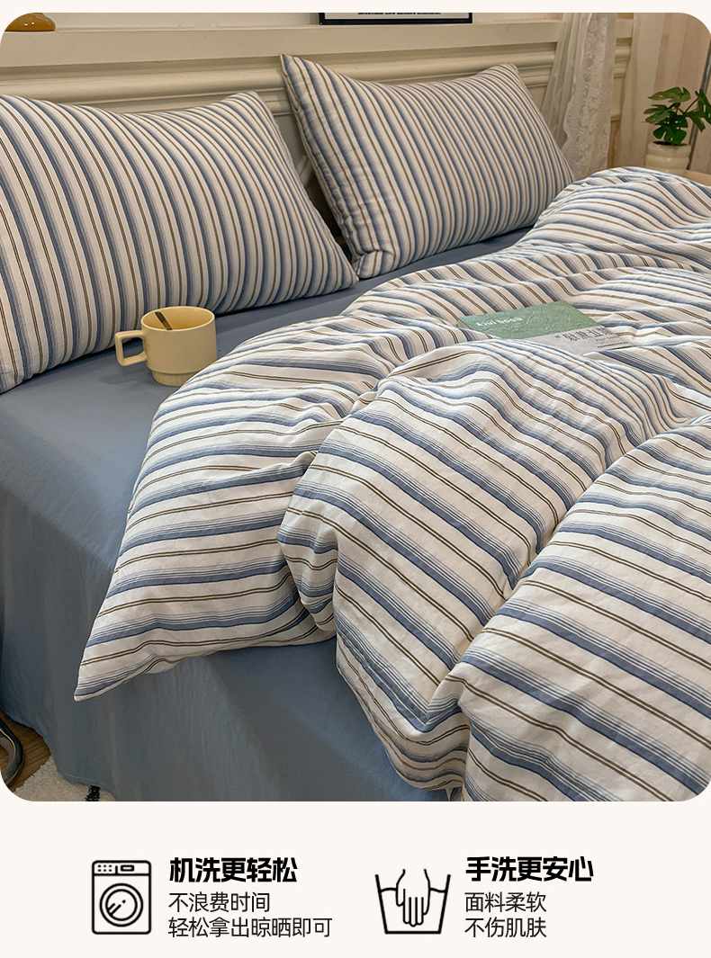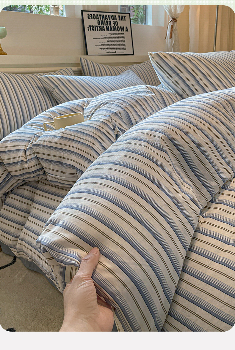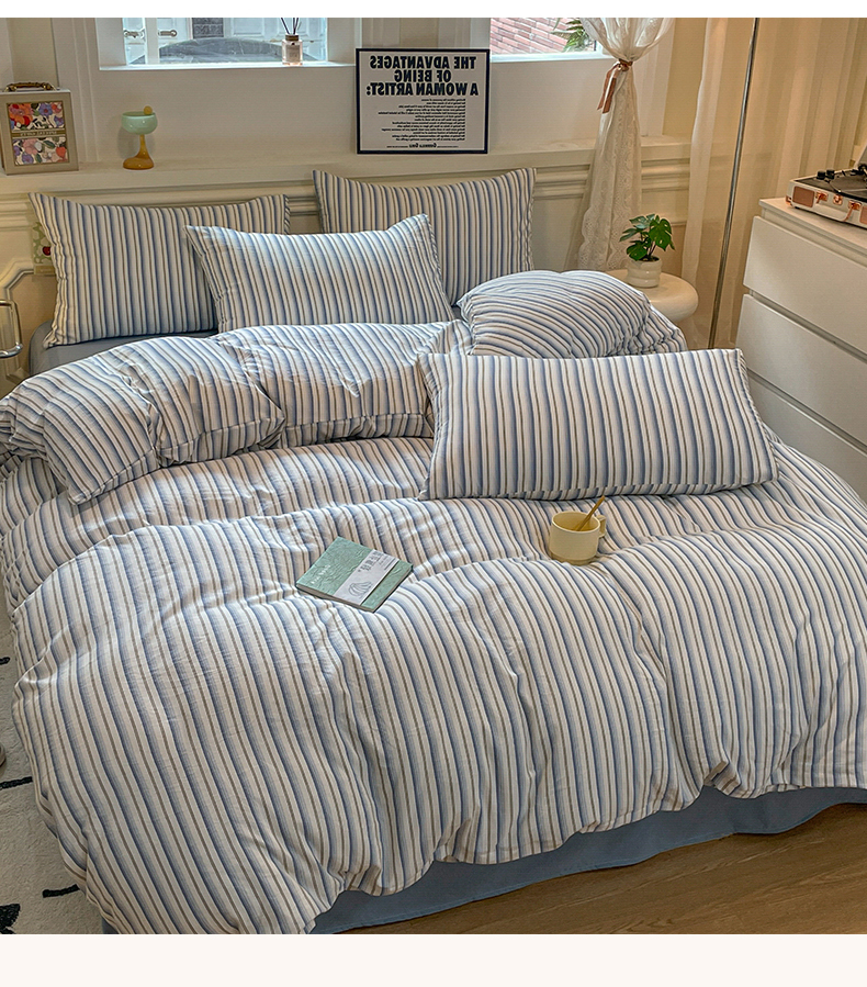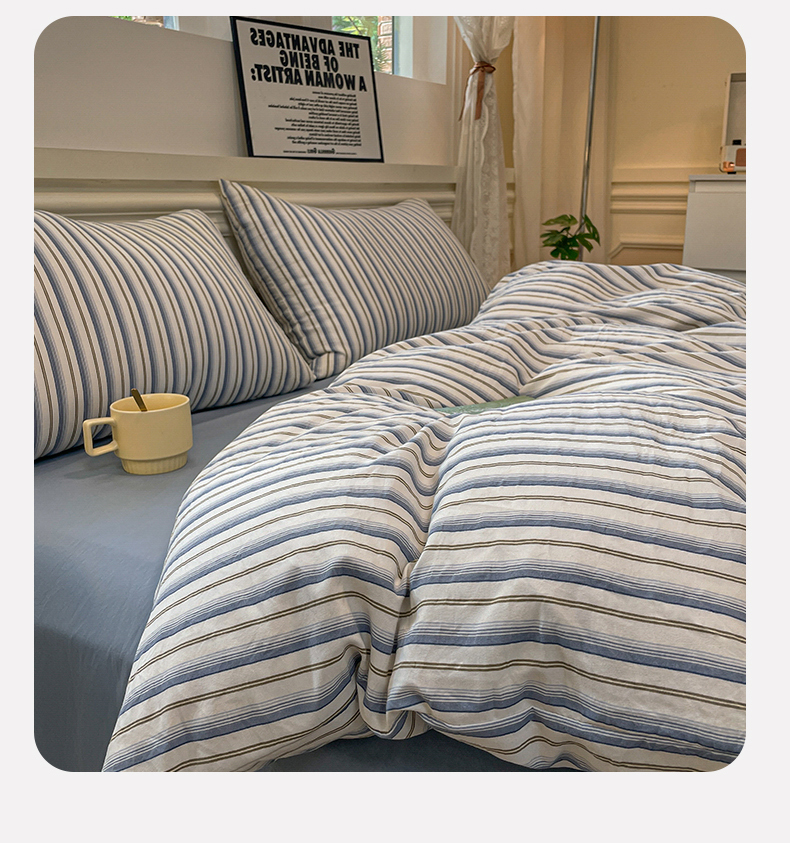 当前位置: 91家纺网 > 商品网购 > 床品套件 > 四件套 > 水洗棉四件套 > 盛秋家纺 2025新款水洗棉格子系列四件套灰苏条+蓝灰