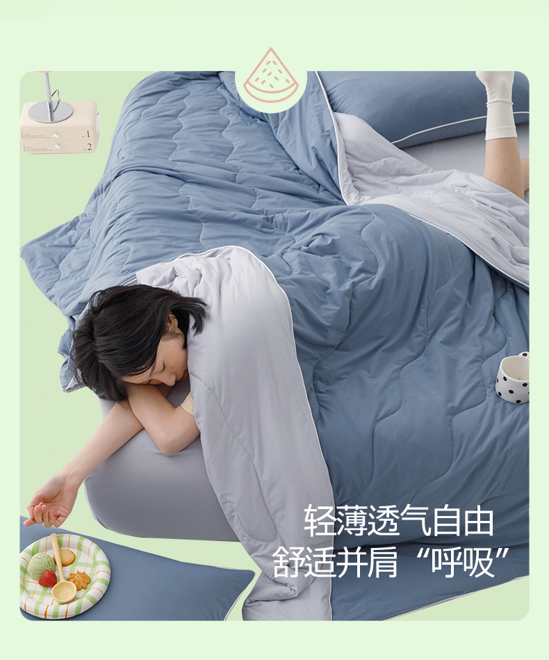 商品名称:眠博士 2025新款170g凉感瓜瓜夏被空调被 海盐波波-蓝拼灰