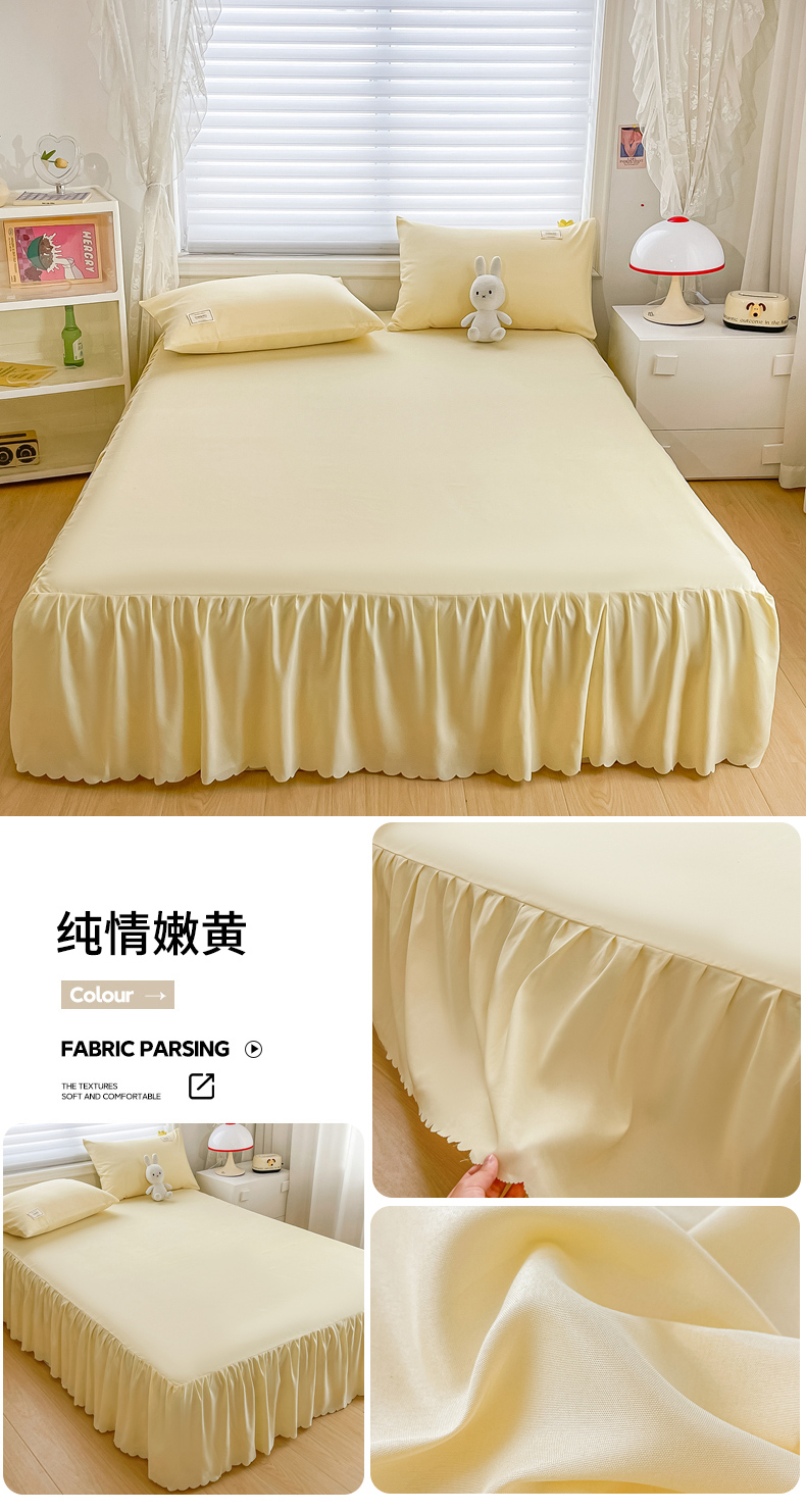 • 91家纺网 家纺一手货源 找家纺 莎臣豹 2025水洗磨毛纯色单品床裙可配二三件套 纯纯嫩黄