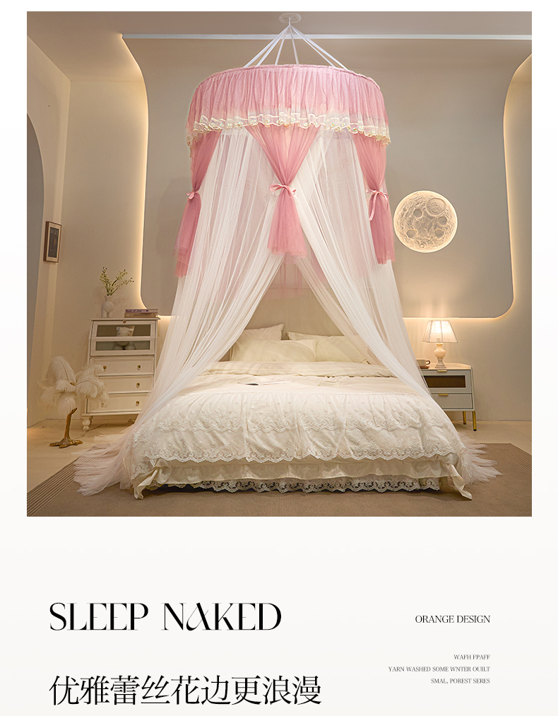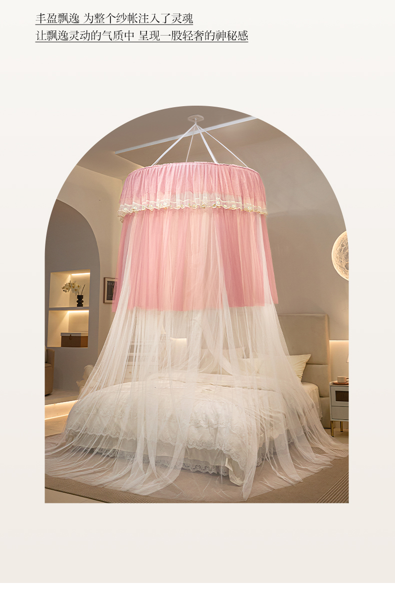 商品名称:世婕 2025新款奢华宫廷吊顶蚊帐-幻梦 幻梦樱花粉