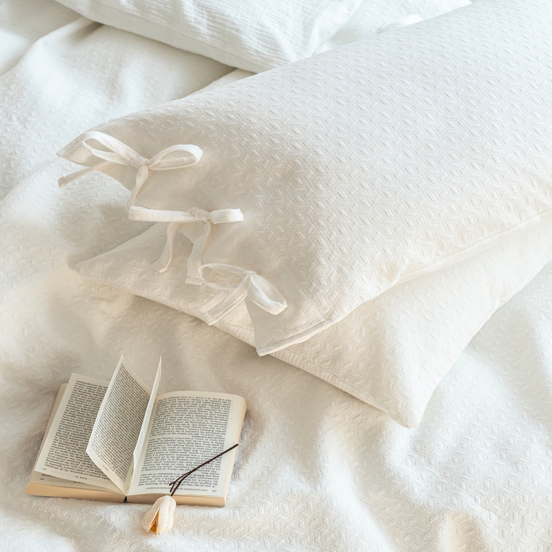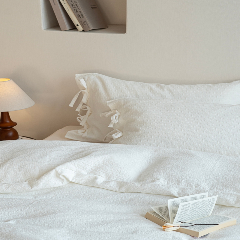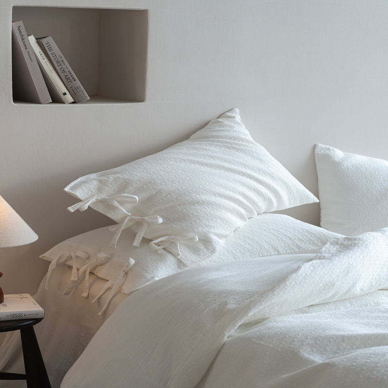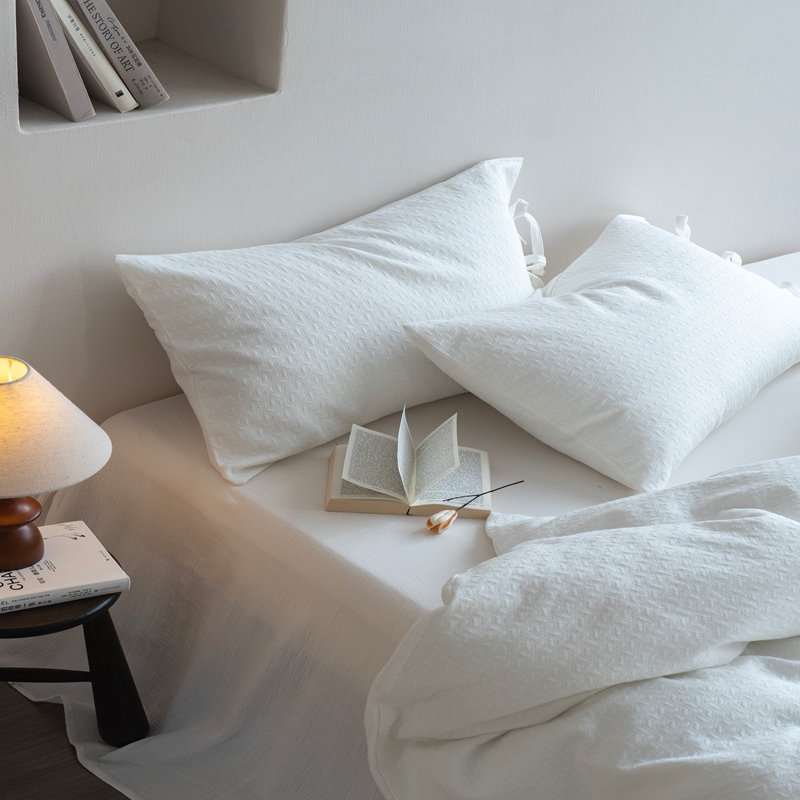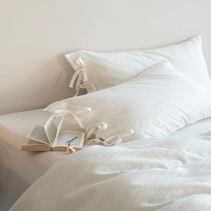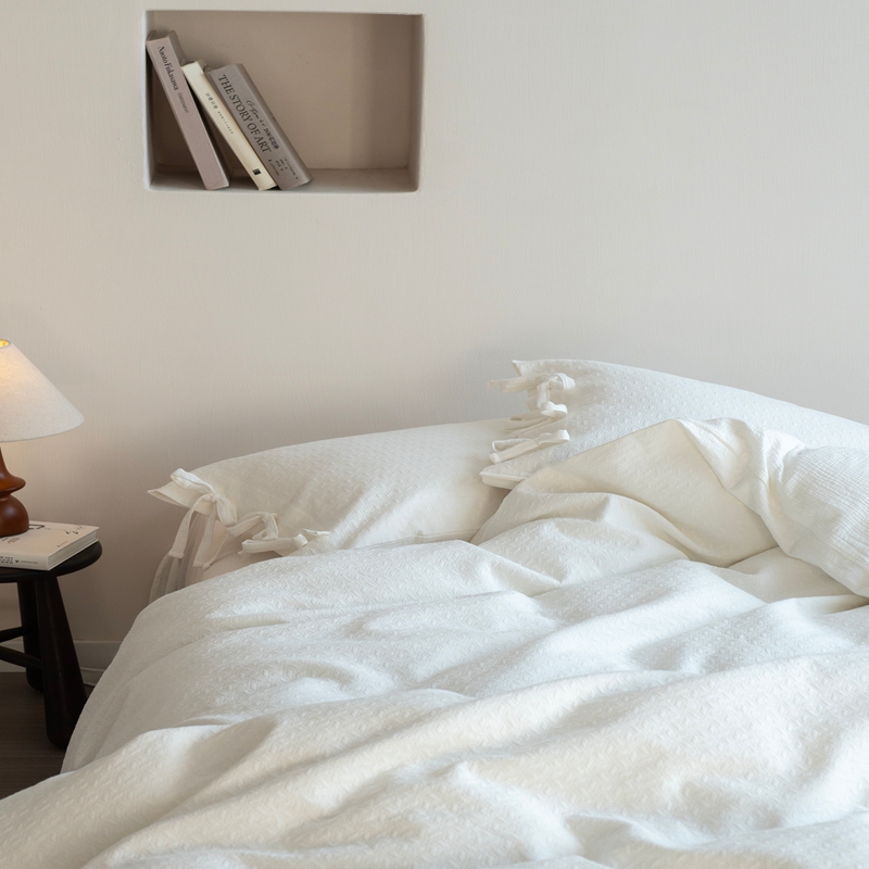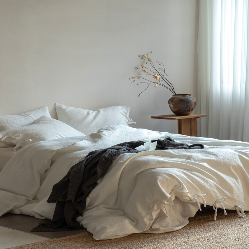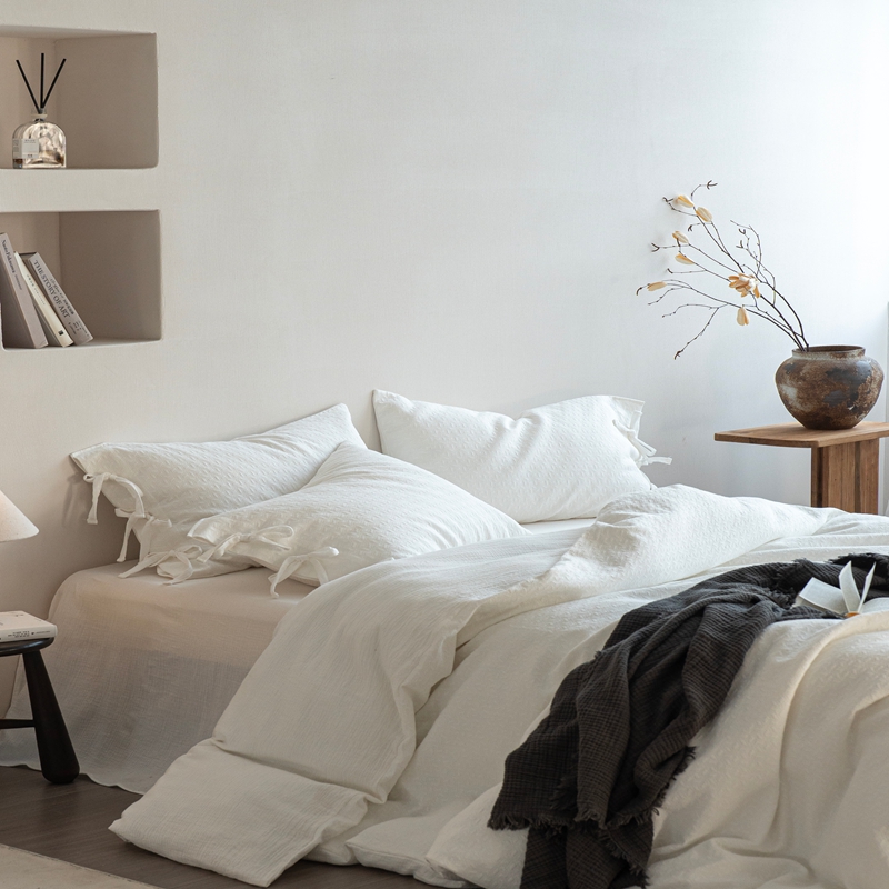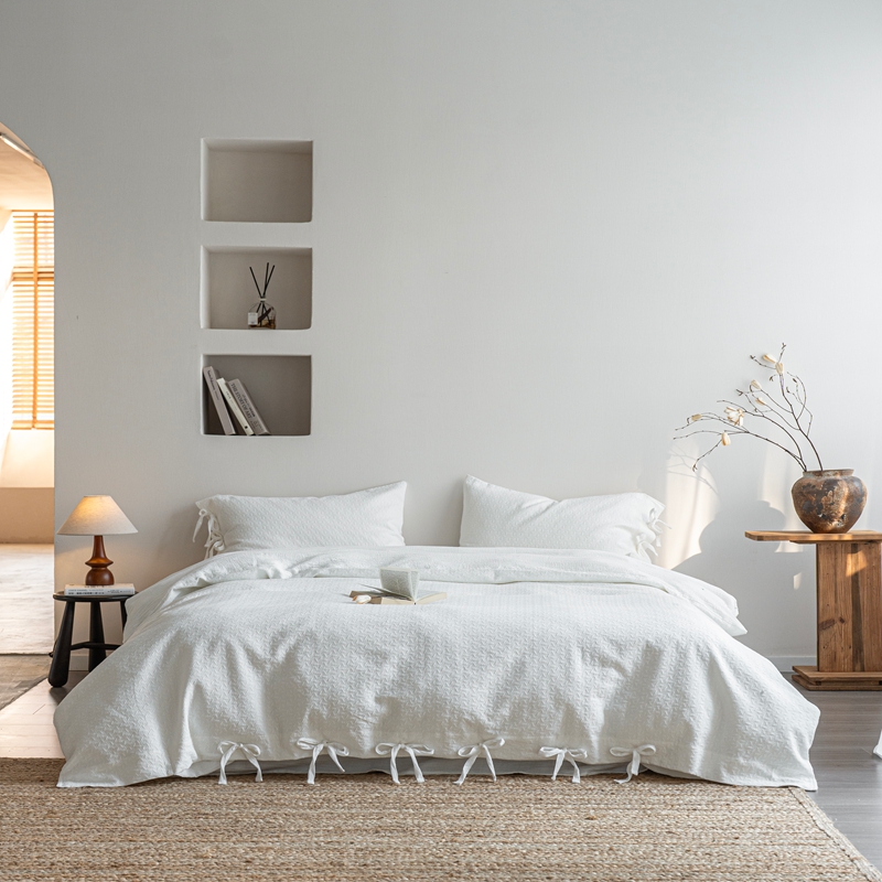 (总)璞素家居 2025新款棉麻绑带款四件套,白色