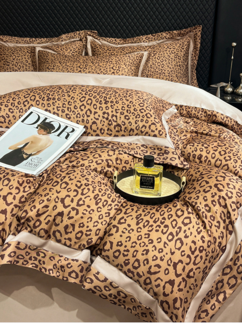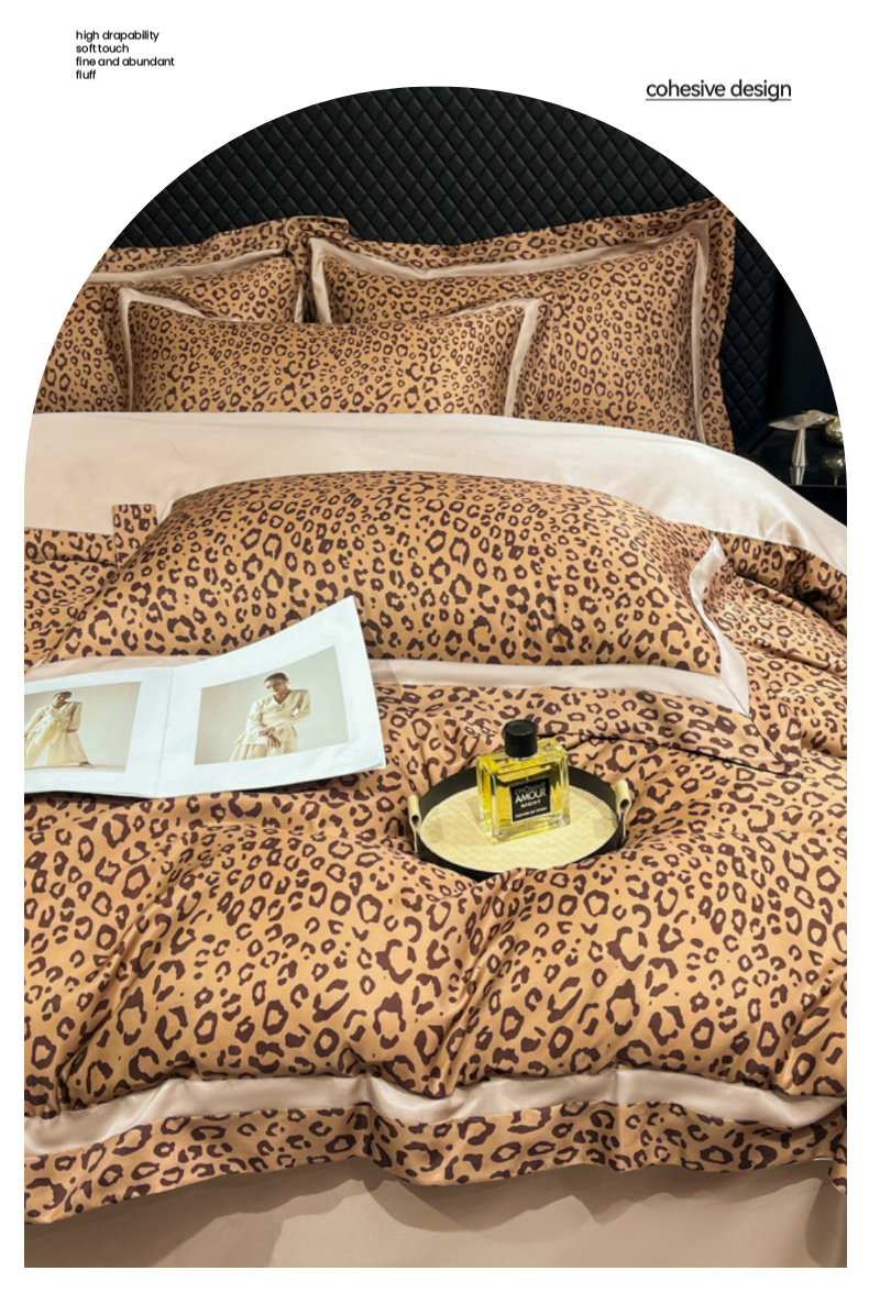金麦家纺 2025新款精品冰丝四件套 冰丝豹纹-香槟色
