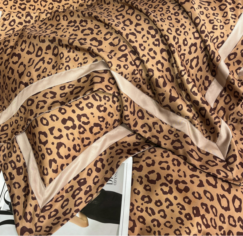 商品名称:金麦家纺 2025新款精品冰丝四件套 冰丝豹纹-香槟色