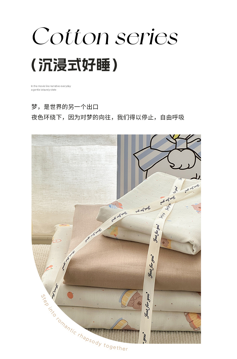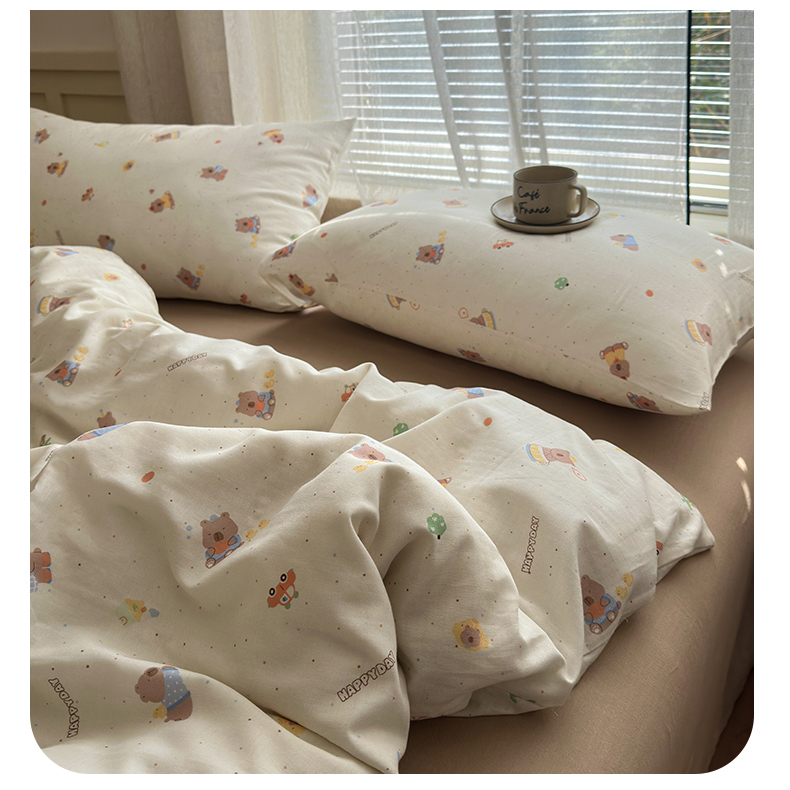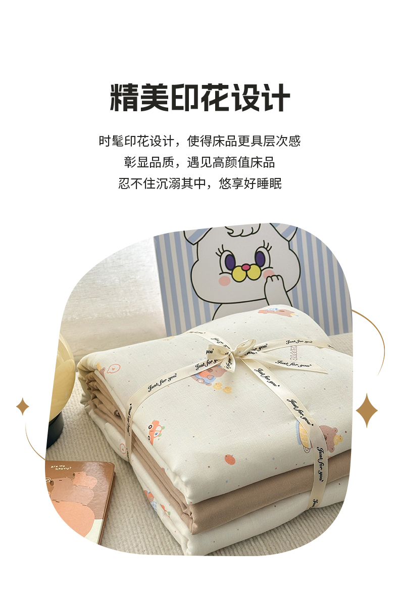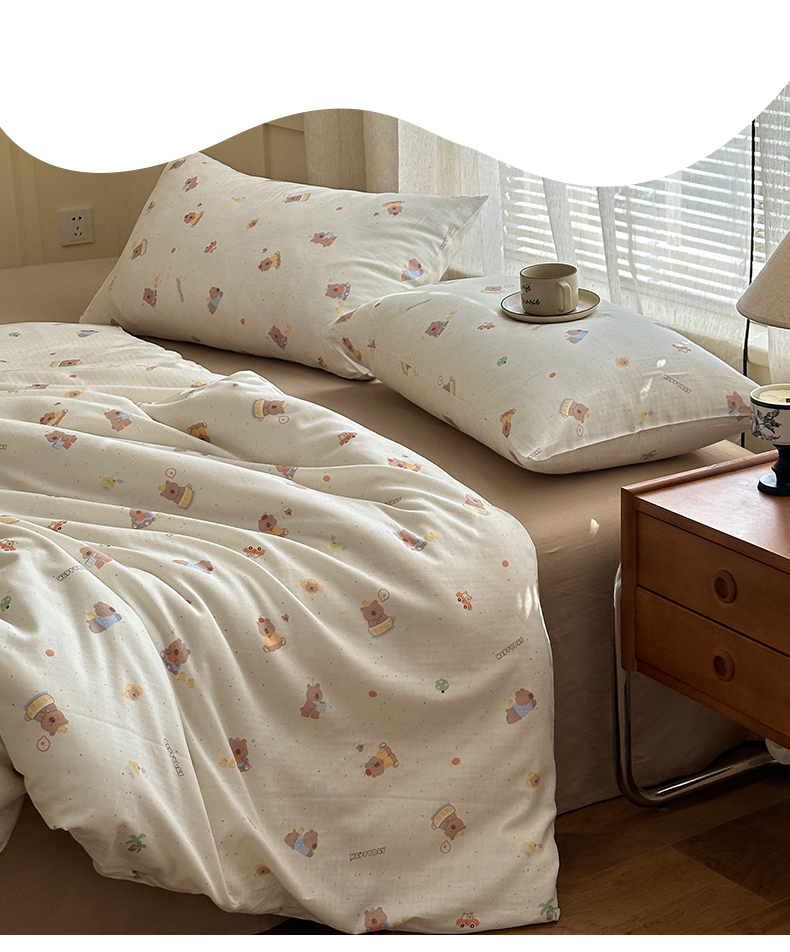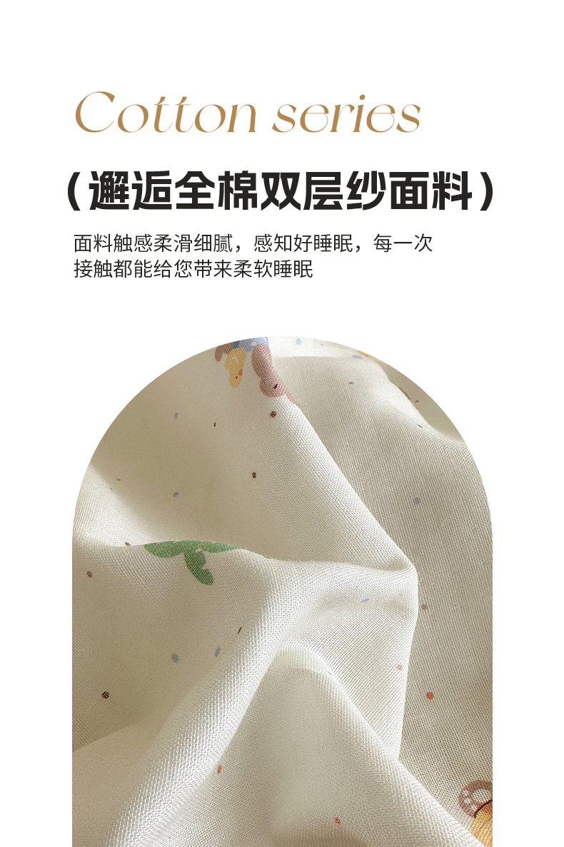 当前位置: 91家纺网 > 商品网购 > 床品套件 > 四件套 > 双层纱四件套 > 亿梵家居 2025新款A类母婴级有氧全棉纯棉双层纱纯棉印花四件套-叠拍图 甜点小熊-米