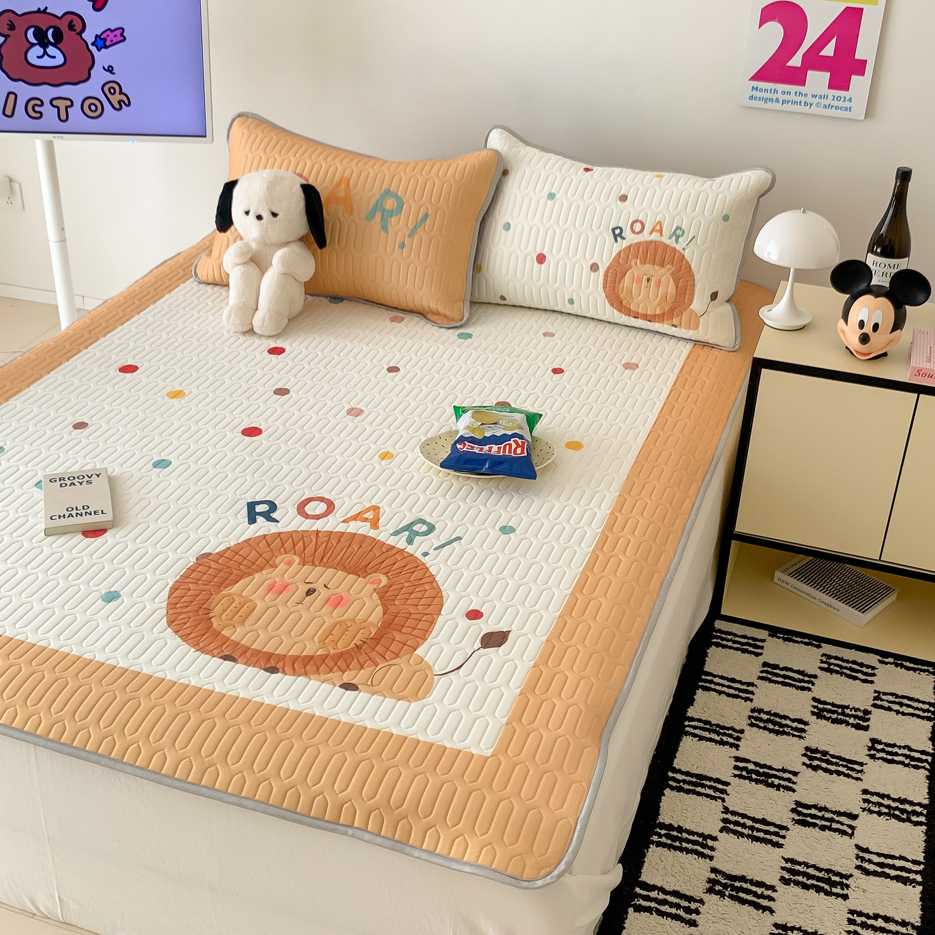 顾里家纺 2025春夏新款ins卡通大版席凉席席子 波点狮子