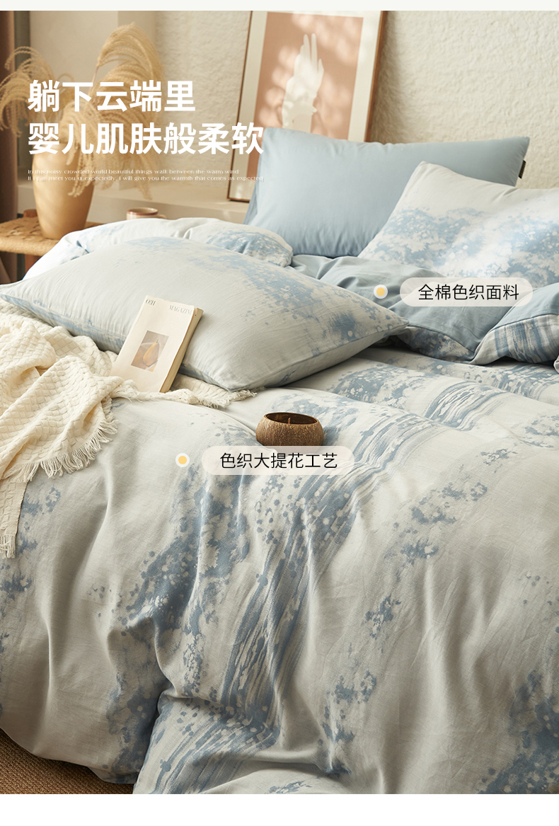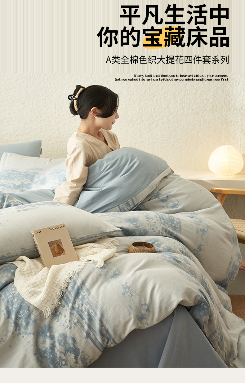 当前位置: 91家纺网 > 商品网购 > 床品套件 > 四件套 > 全棉普通四件套 > 趣色2025新款A类全棉色织大提花四件套 墨凡-蓝