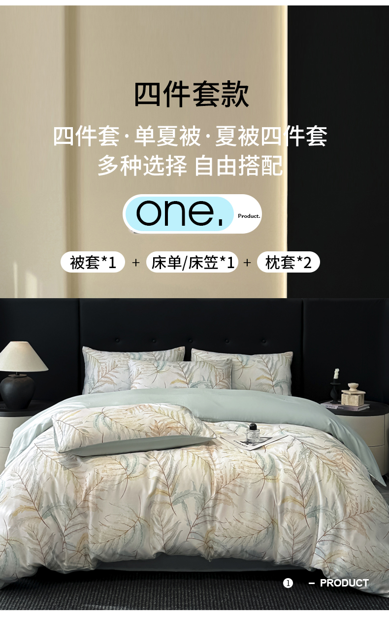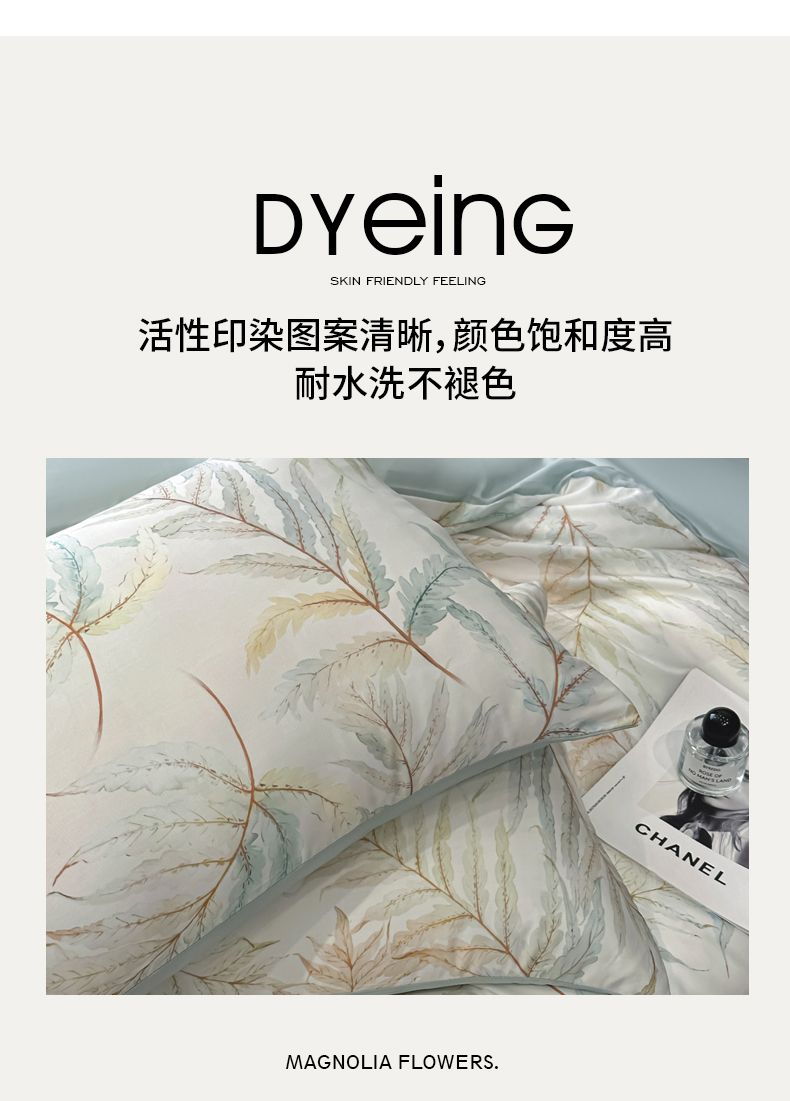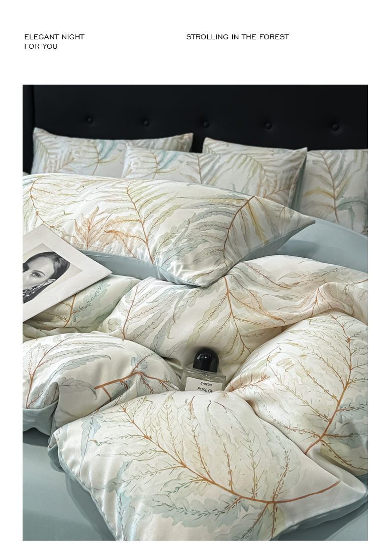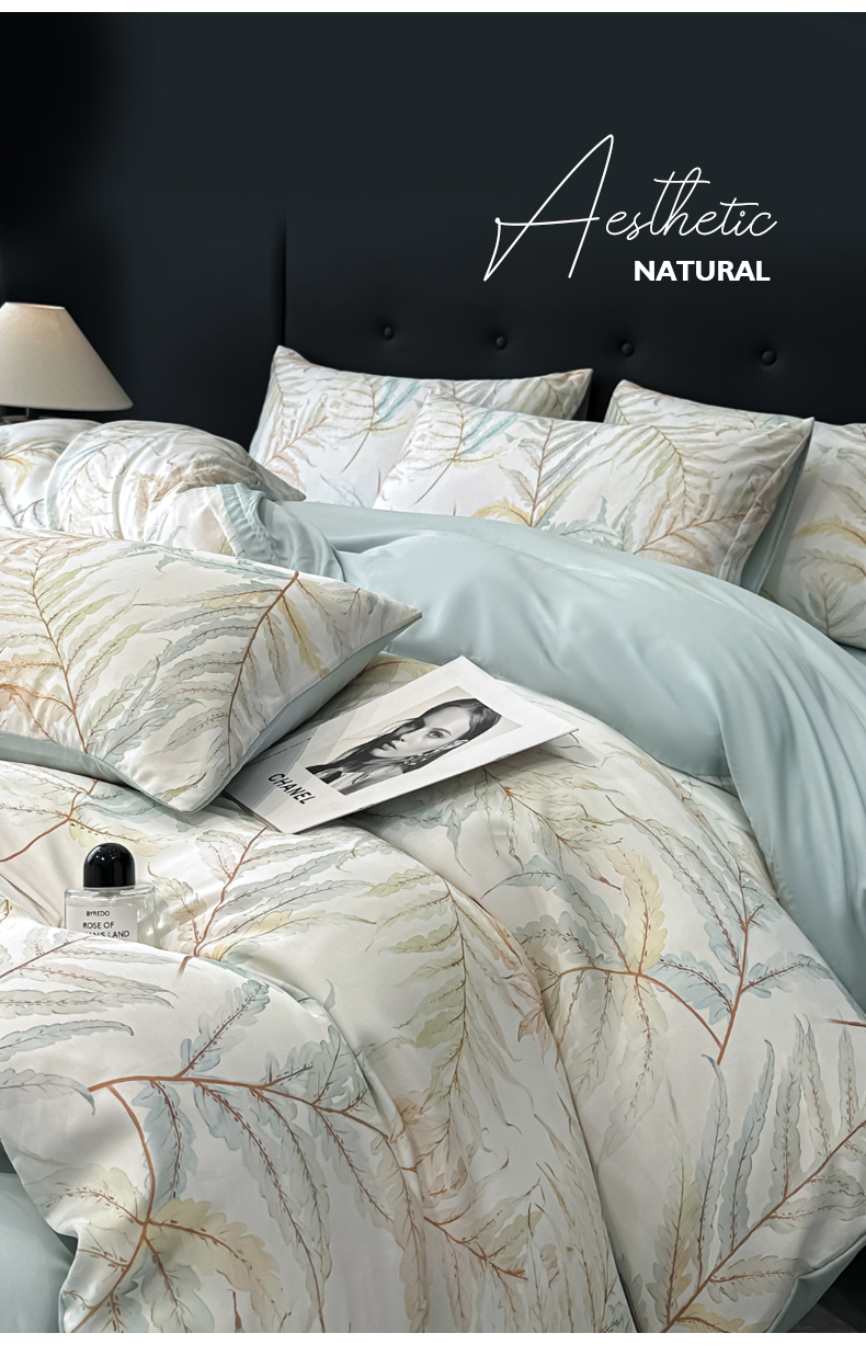商品名称:慕晨 2025春夏新品莱赛尔天丝数码印花四件套莱赛尔夏被四件套天丝夏凉被直播热款 叶澜
