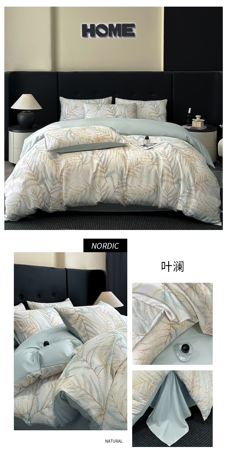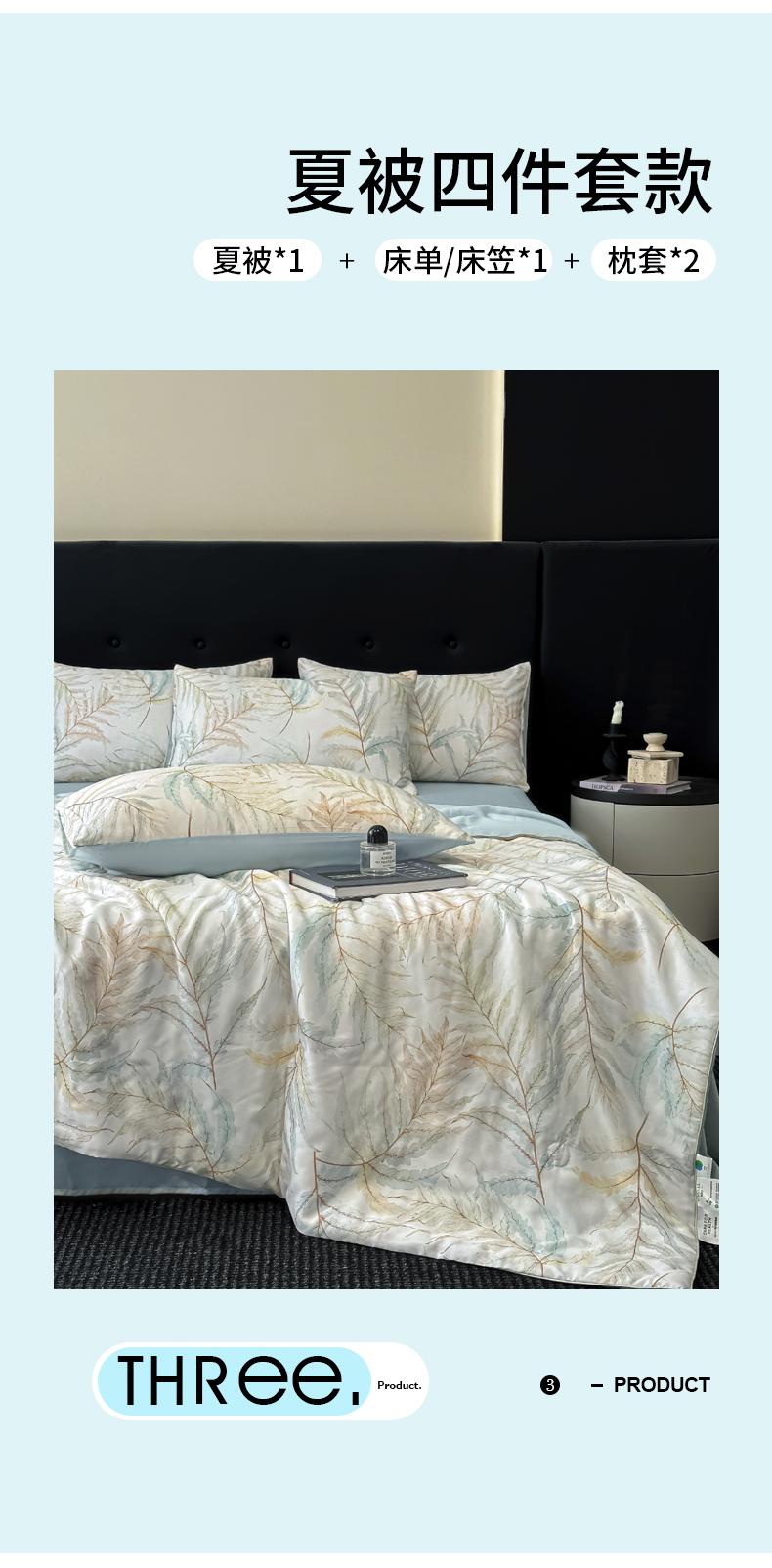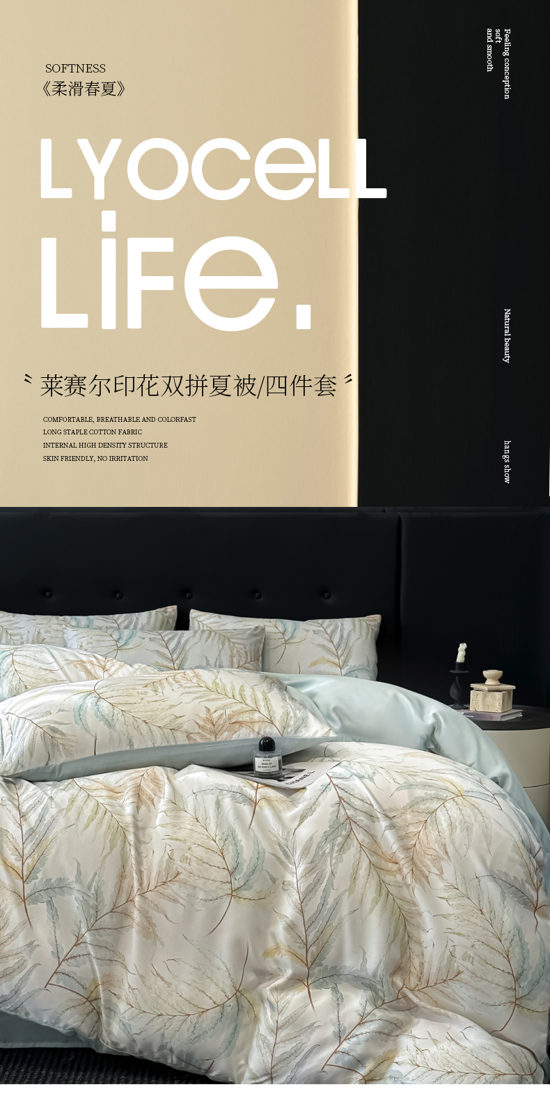 商品名称:慕晨 2025春夏新品莱赛尔天丝数码印花四件套莱赛尔夏被四件套天丝夏凉被直播热款 叶澜