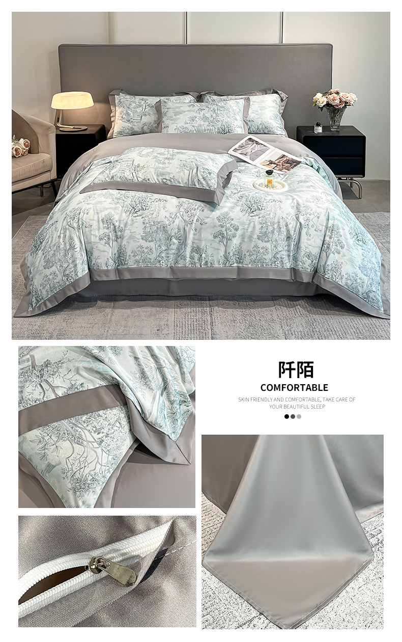 笙意家纺 2025新款水洗冰丝数码印花宽边四件套 阡陌