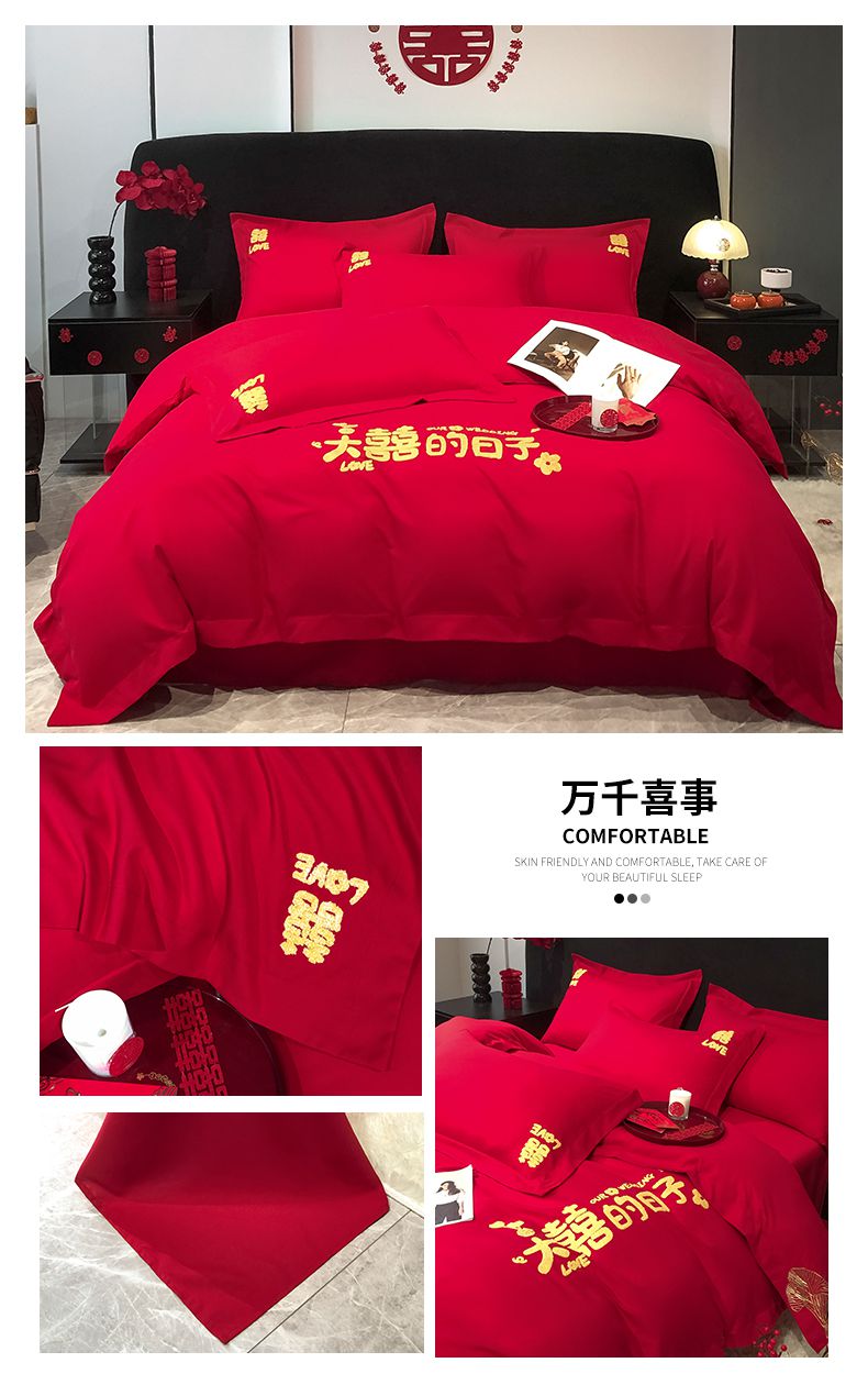 (总)床绮 2025新款百喜印花婚庆四件套-风格二,大喜,唯一(红字),唯一(蓝字),喜欢(红),喜欢(红字),喜欢(蓝字),永爱