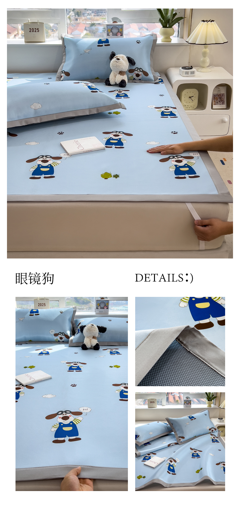 商品名称:丝羽坊 2025新款小版印花冰丝凉席平铺床席款冰丝席碳光冰丝凉席 眼镜狗