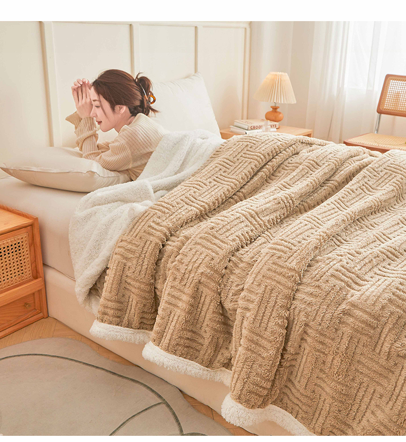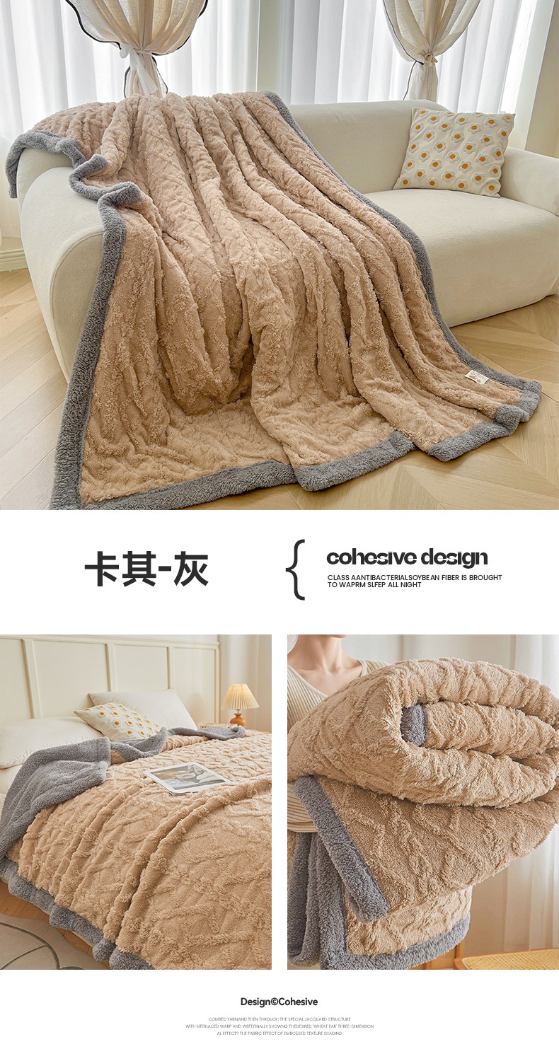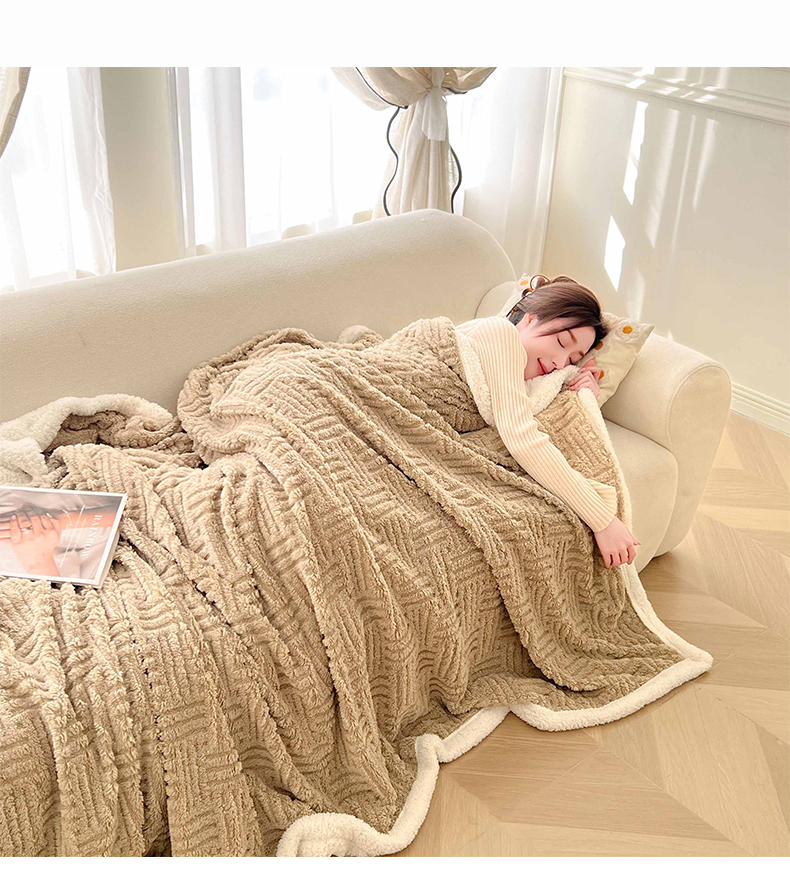 澳梵家居 2025新款塔芙绒提花毛毯盖毯 柔雾蓝-灰