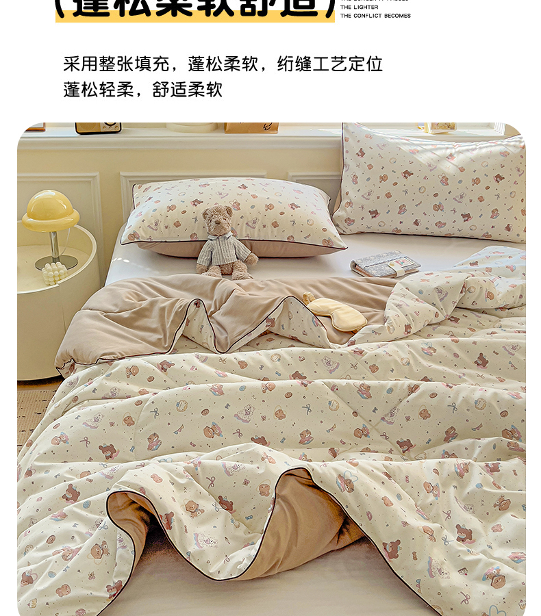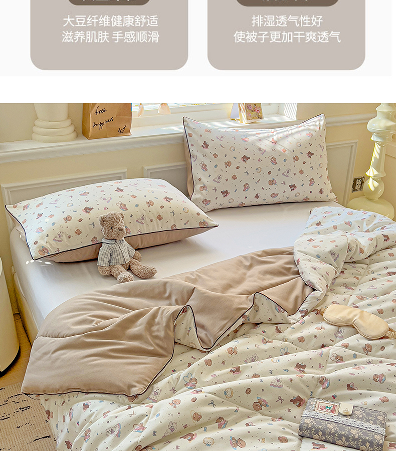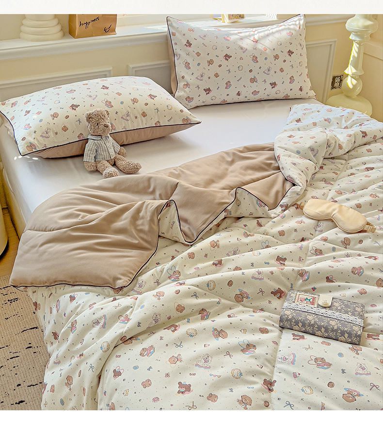 金蕊阁 2025新款A类水洗双层纱夏被大豆夏被夏凉被空调被 熊熊乐园,熊熊乐园