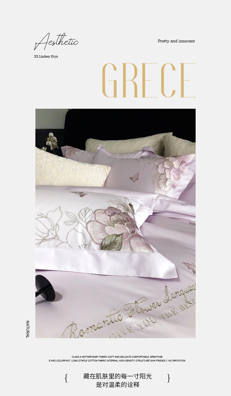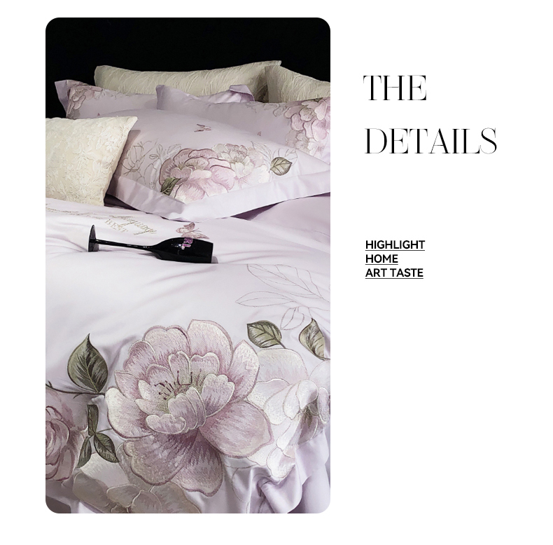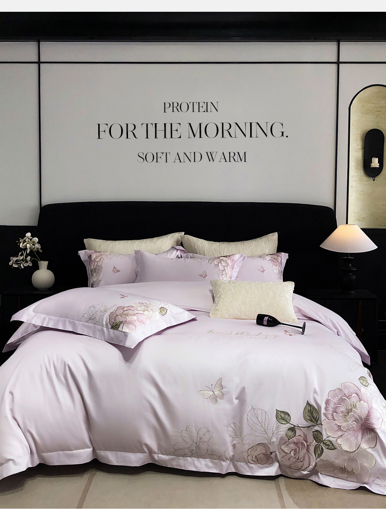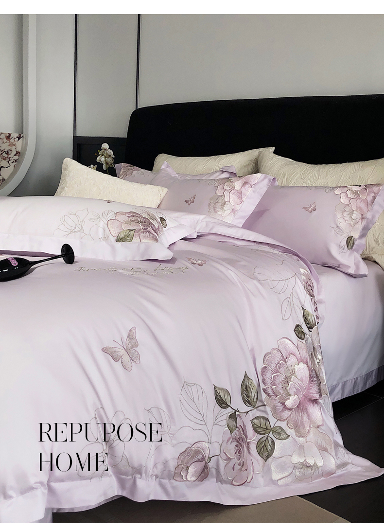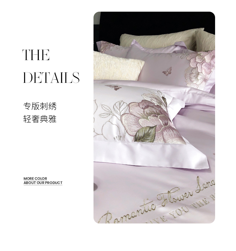 商品名称:2025新款全棉50s绣花刺绣款四件套 花拾-紫