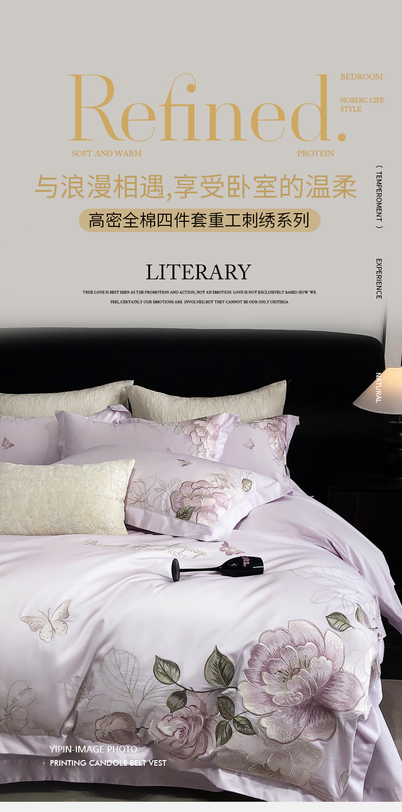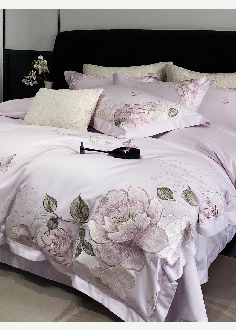 2025新款全棉50s绣花刺绣款四件套 花拾-紫
