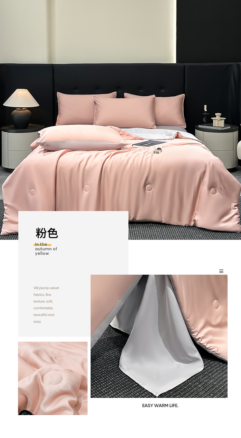 当前位置: 91家纺网 > 商品网购 > 床品套件 > 四件套 > 夏被四件套 > 金鹰 2025新款A类莱赛尔50天丝拼色空调被大豆夏被四件套 粉色