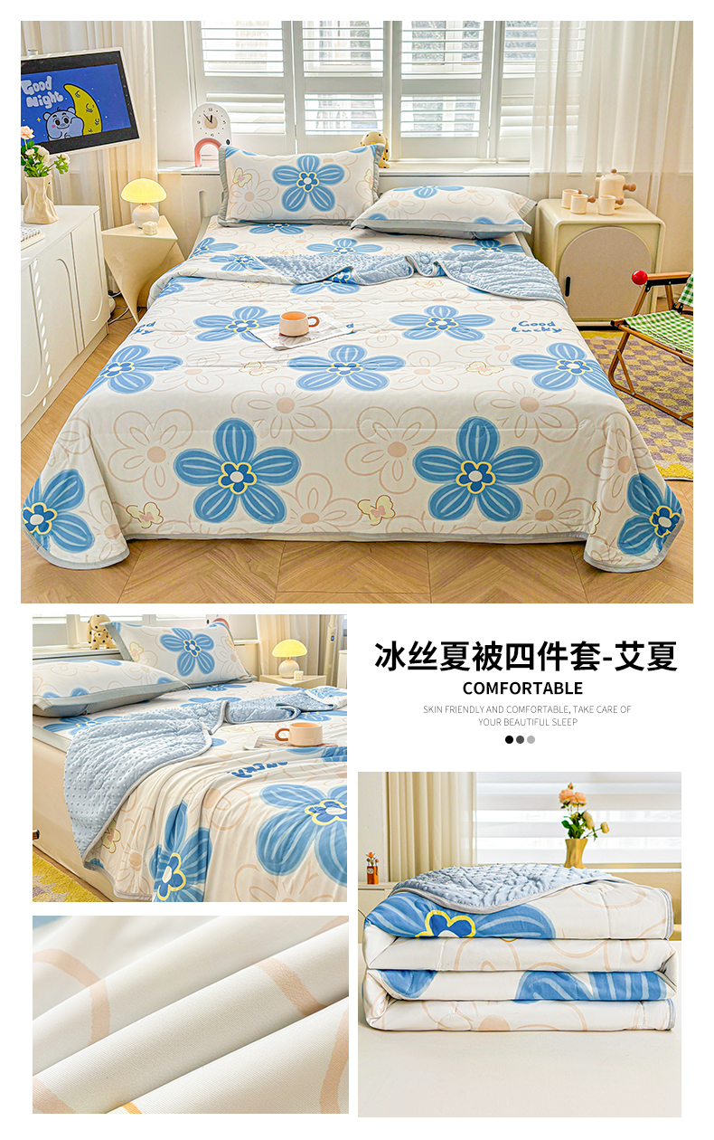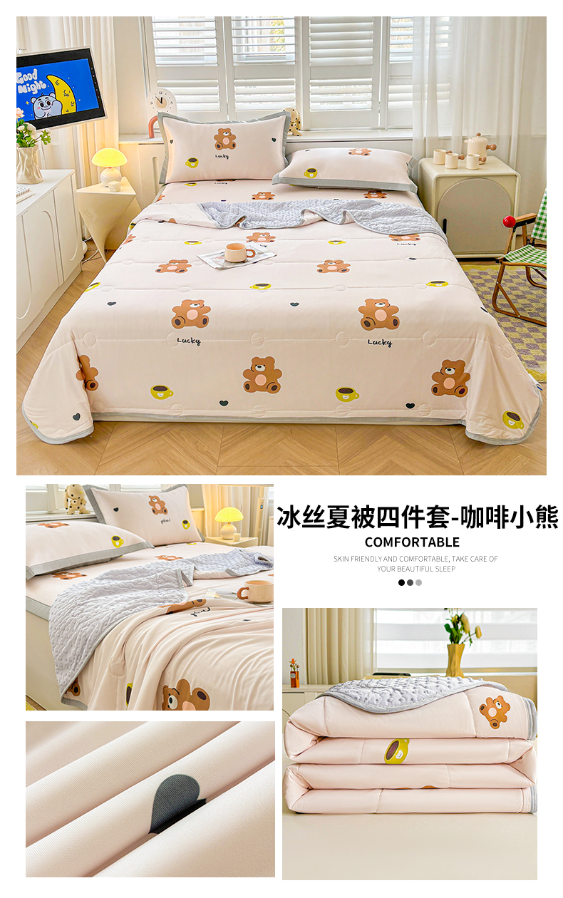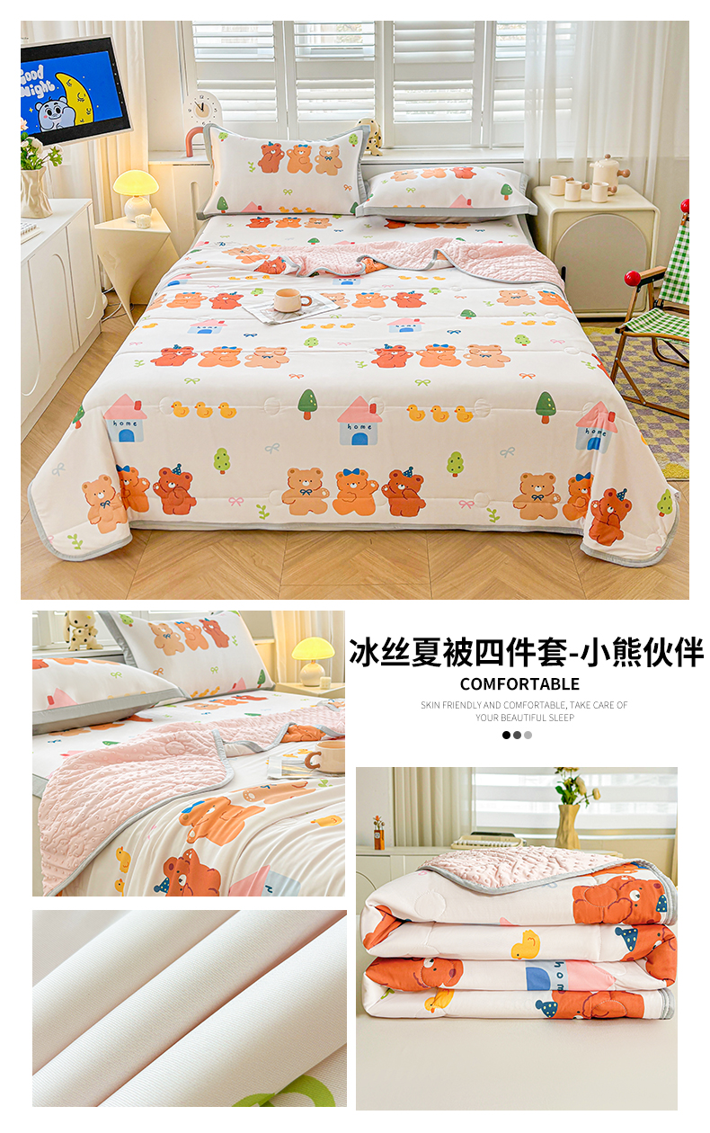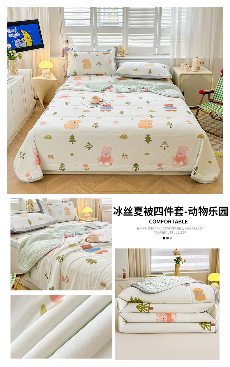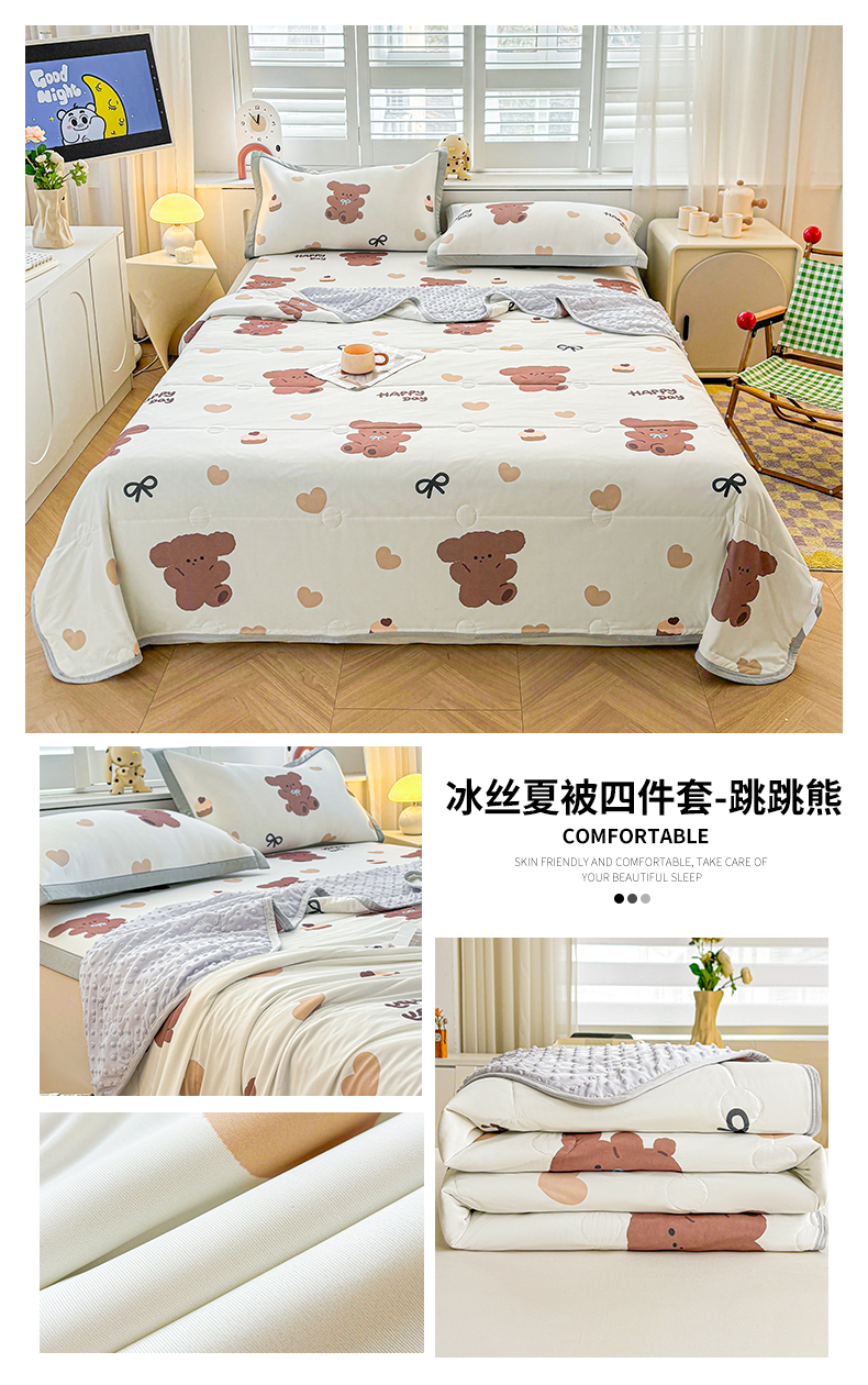 商品名称:(总)雯豆2025夏季新品冰丝碳光凉席+凉感丝印花夏被四件套卡通小清新绑带席子四件套