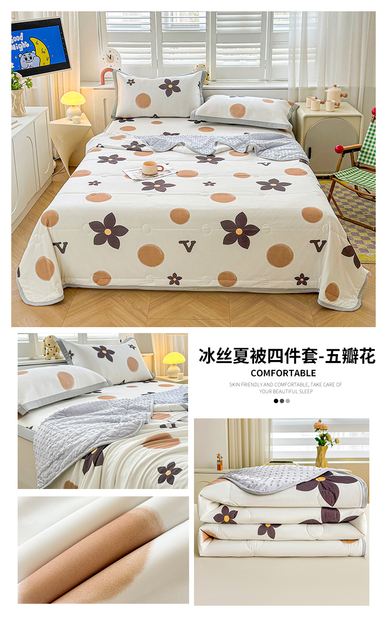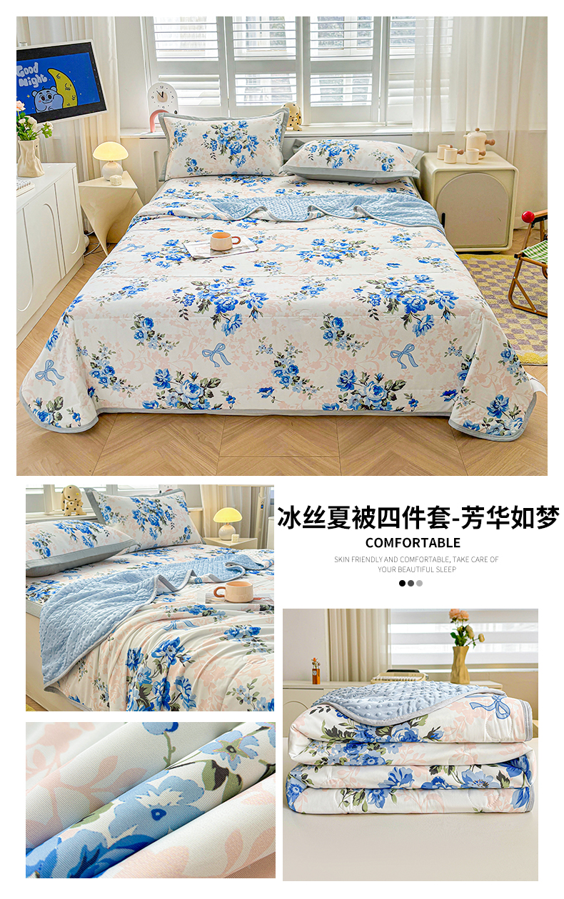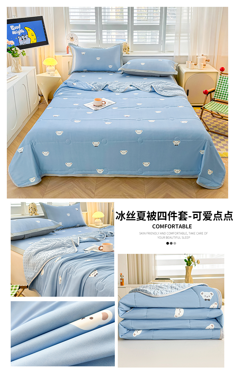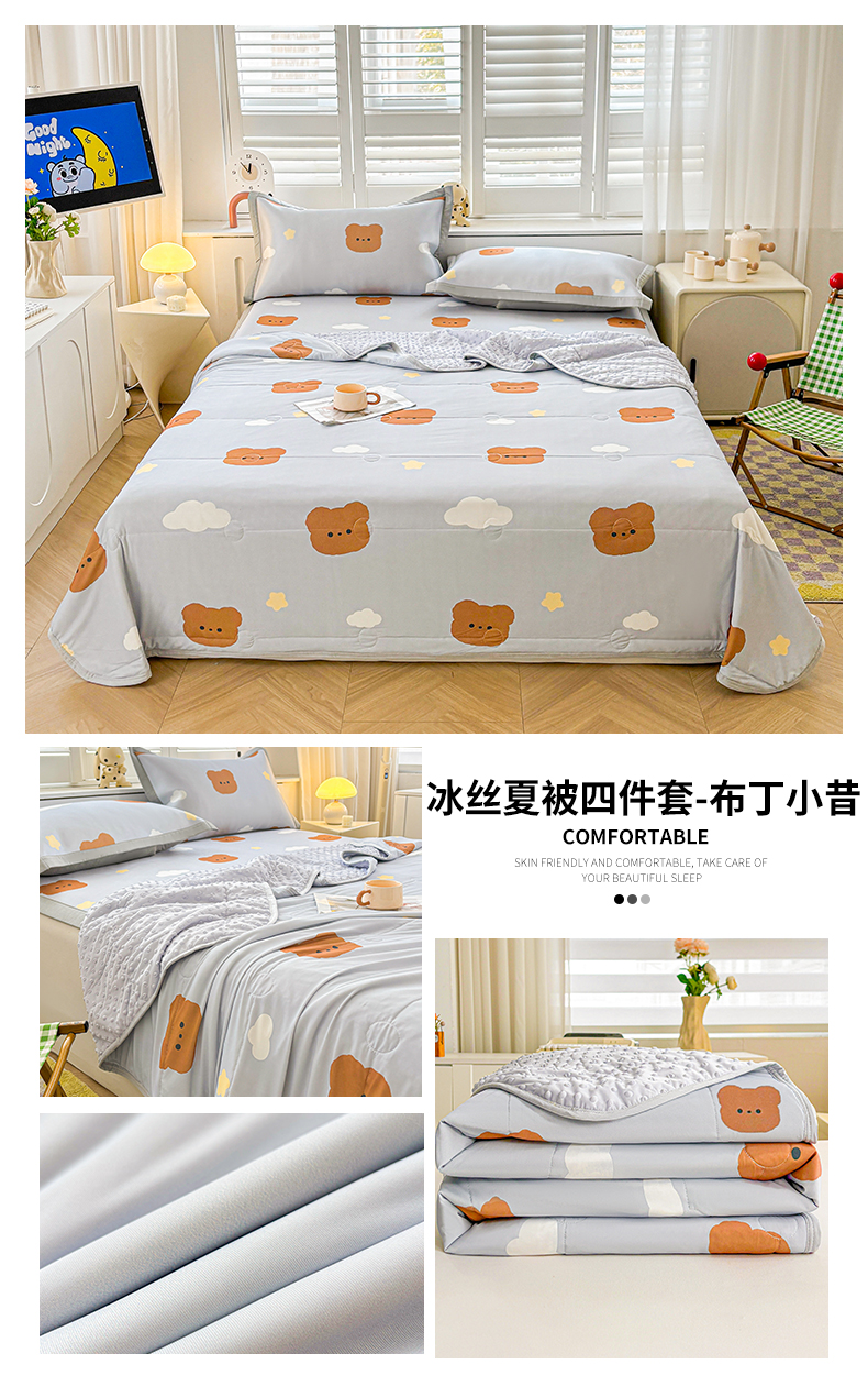 商品名称:(总)雯豆2025夏季新品冰丝碳光凉席+凉感丝印花夏被四件套卡通小清新绑带席子四件套