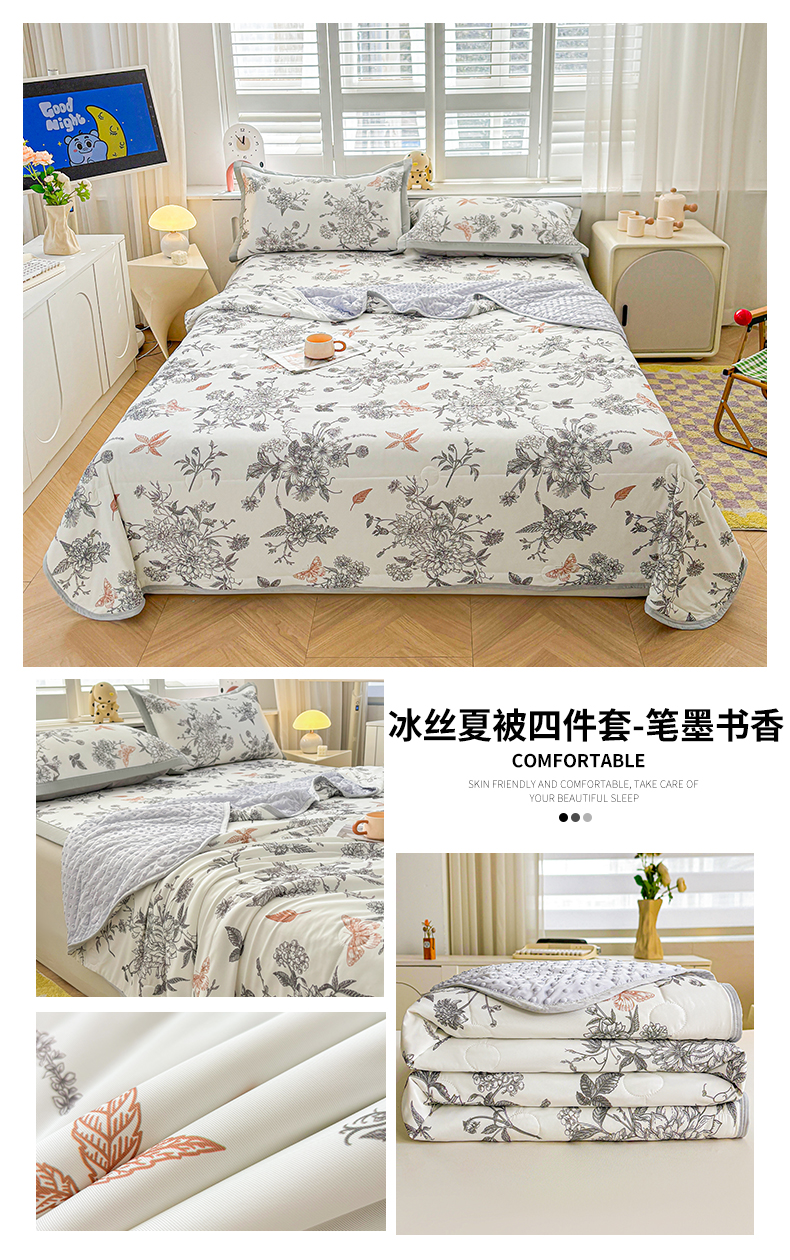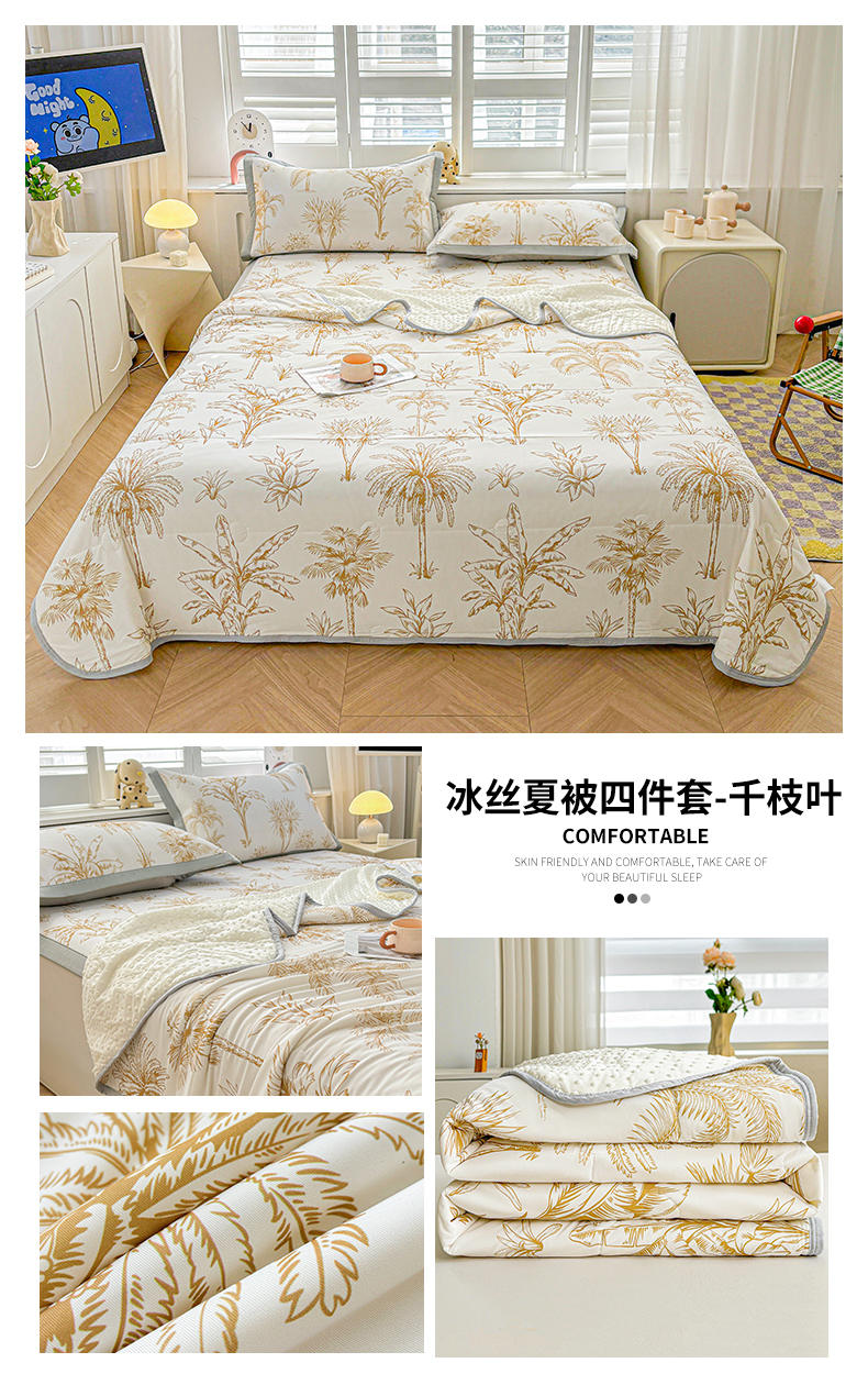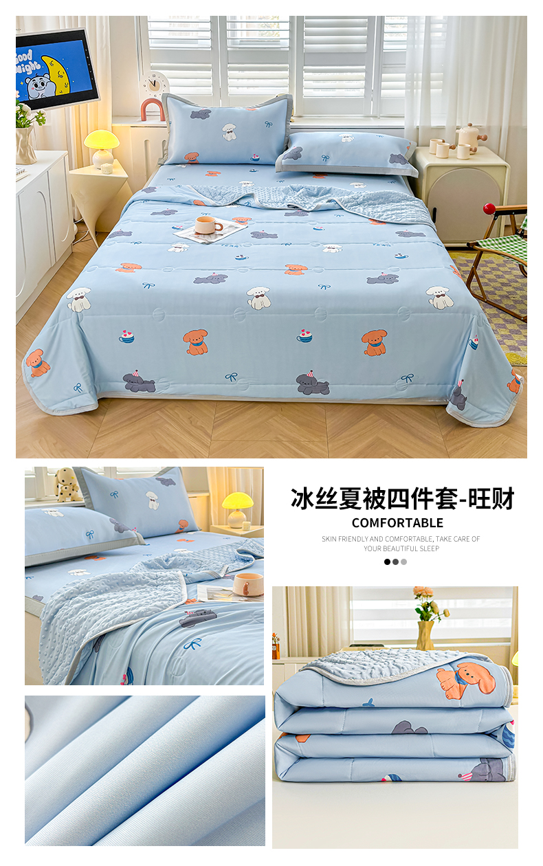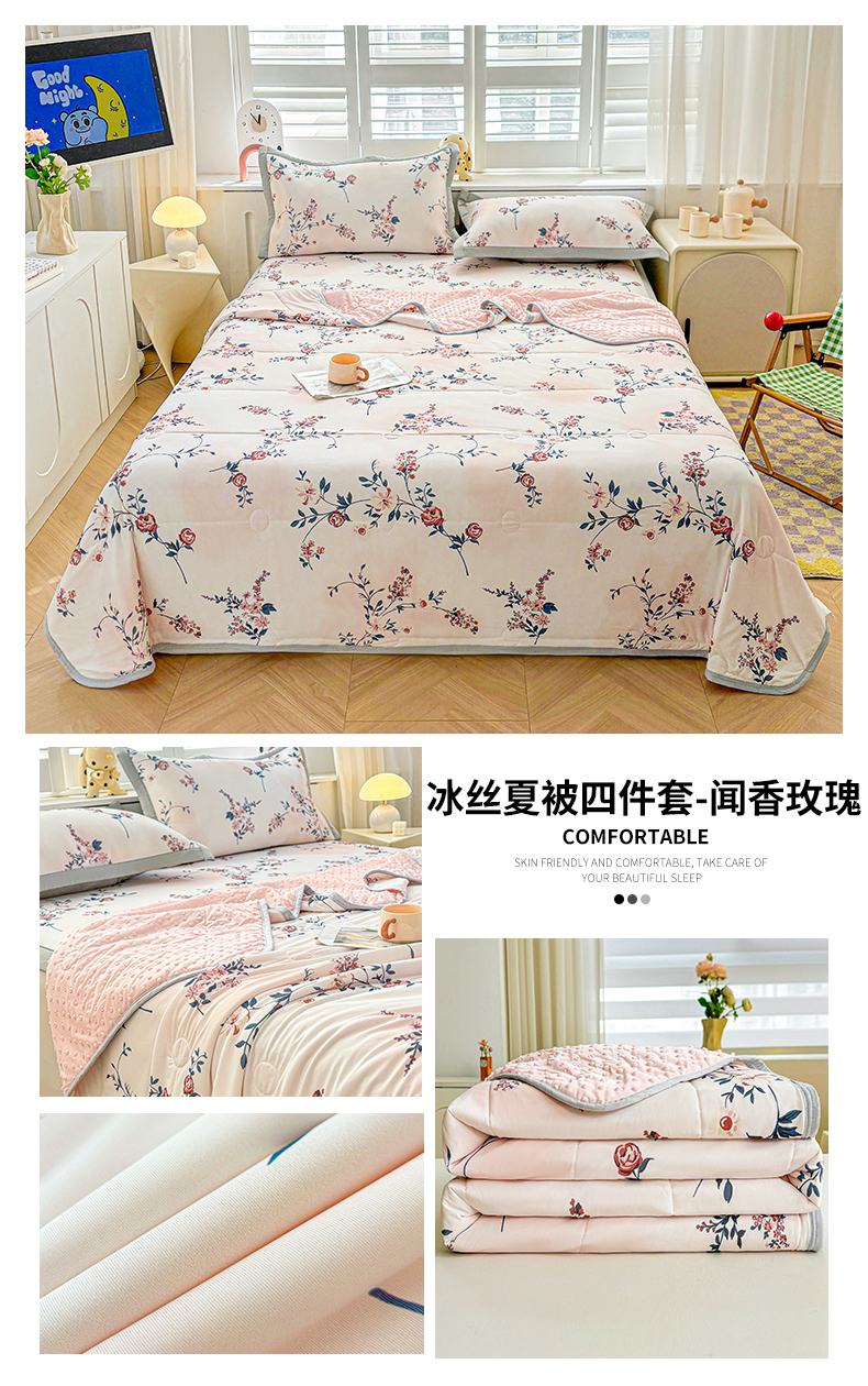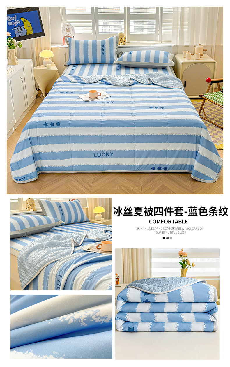 商品名称:(总)雯豆2025夏季新品冰丝碳光凉席+凉感丝印花夏被四件套卡通小清新绑带席子四件套