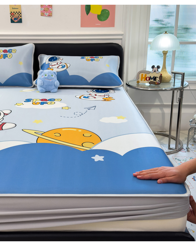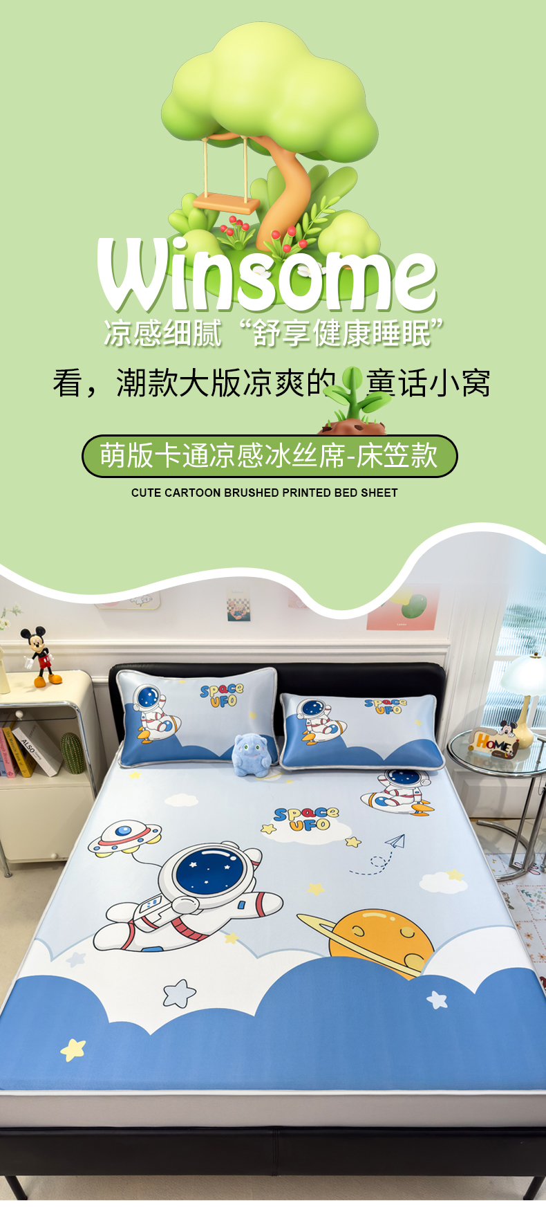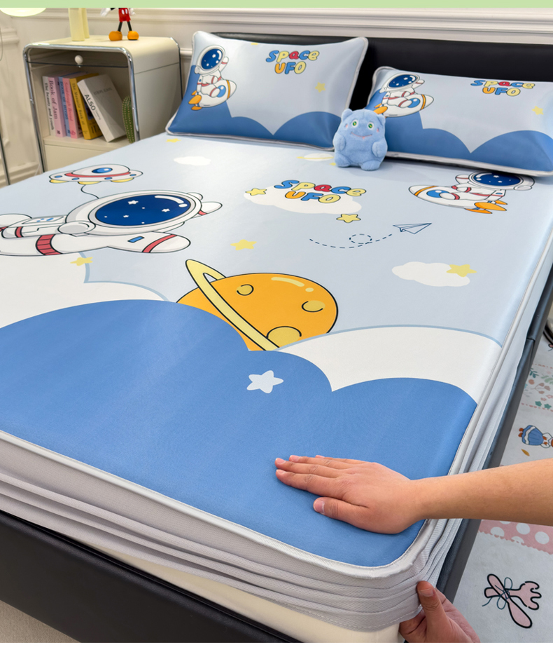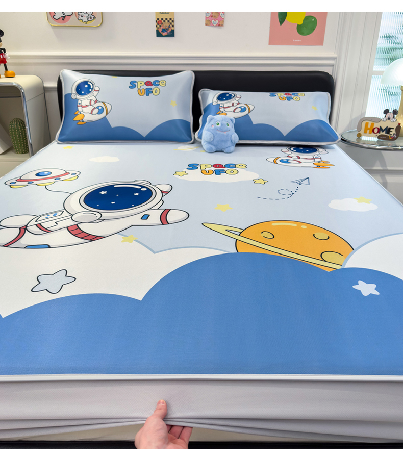 商品名称:丝羽坊 2025新款大版印花冰丝凉席冰丝席碳光冰丝凉席-床笠款 外星人