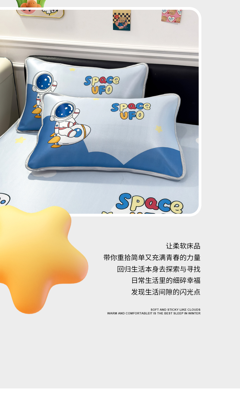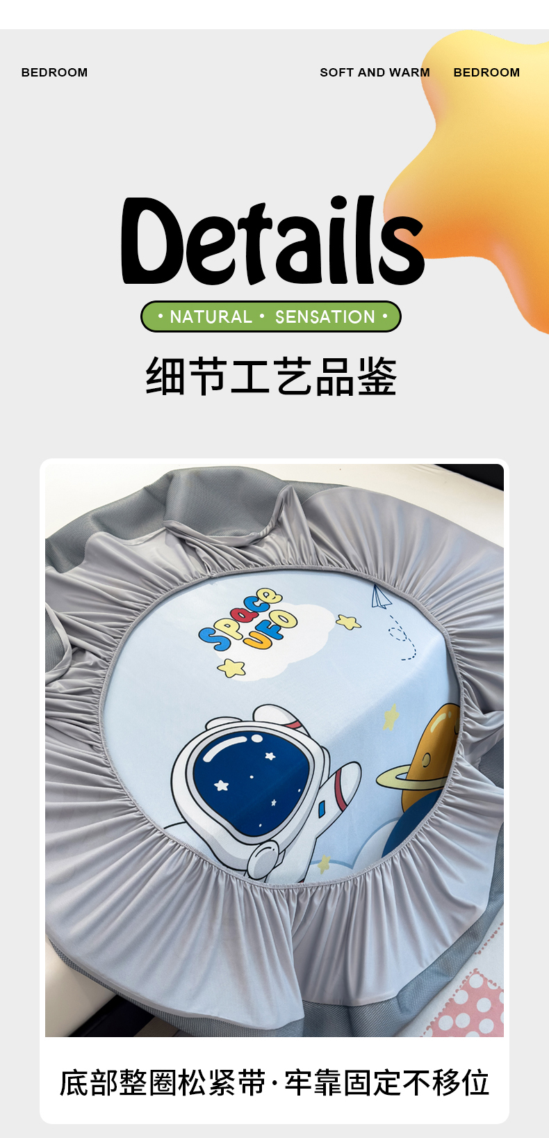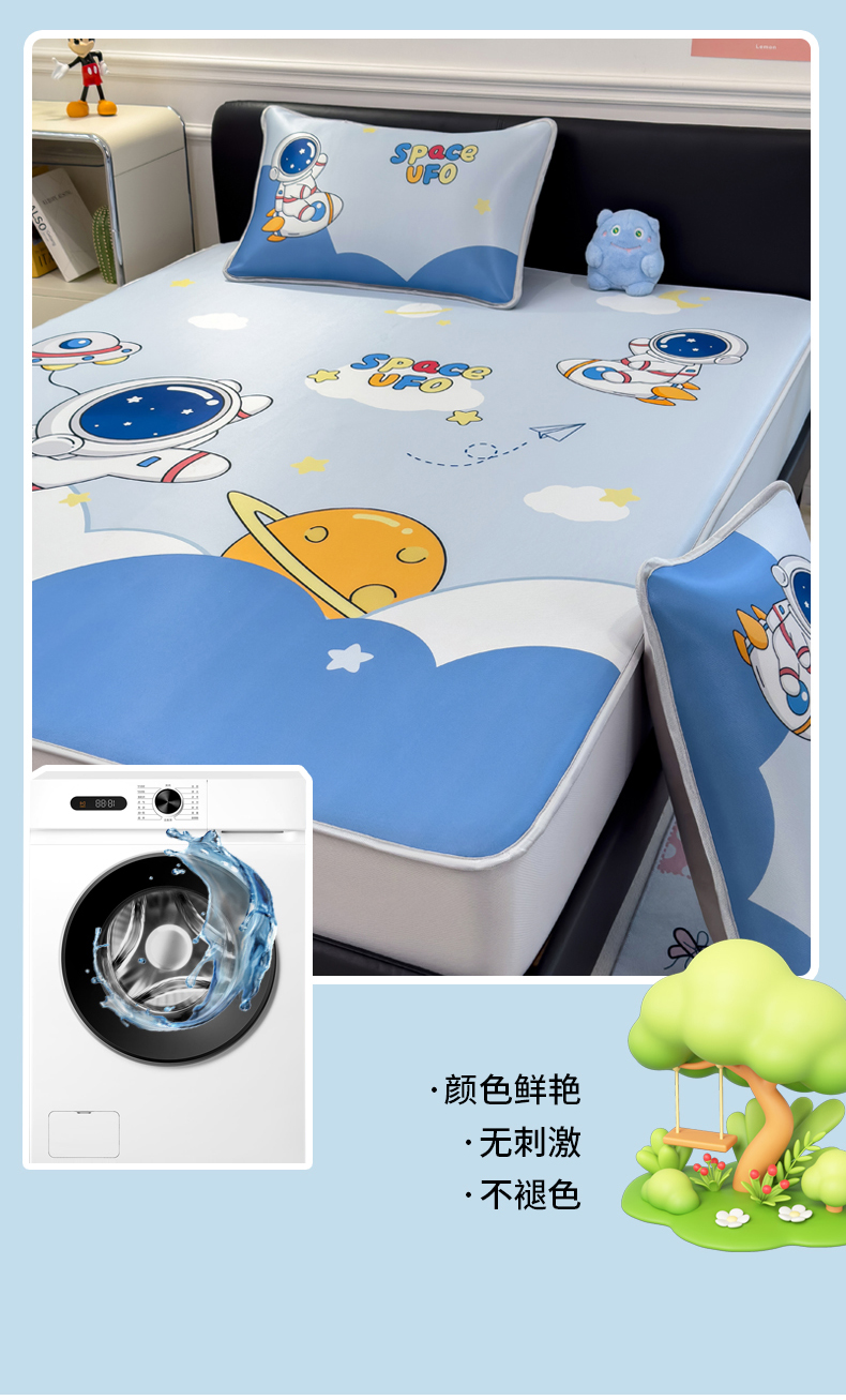商品名称:丝羽坊 2025新款大版印花冰丝凉席冰丝席碳光冰丝凉席-床笠款 外星人