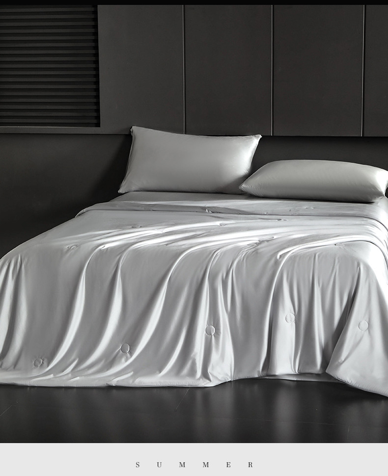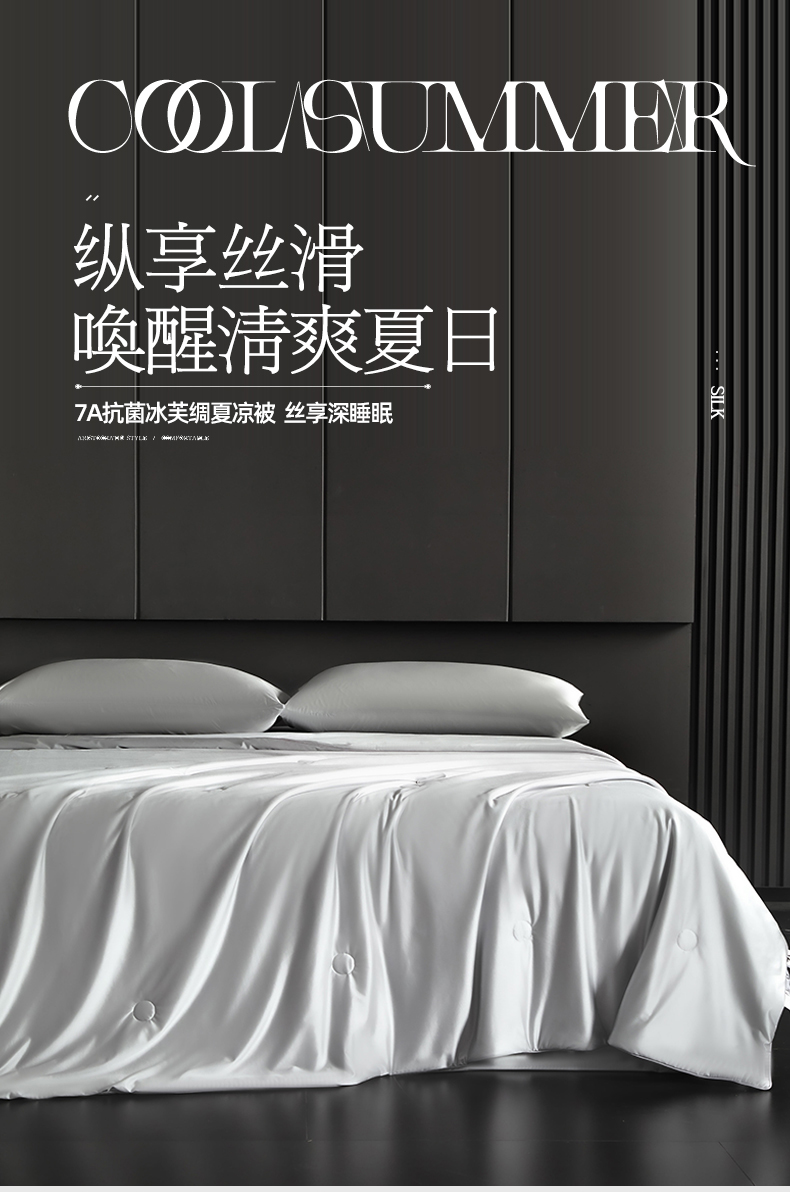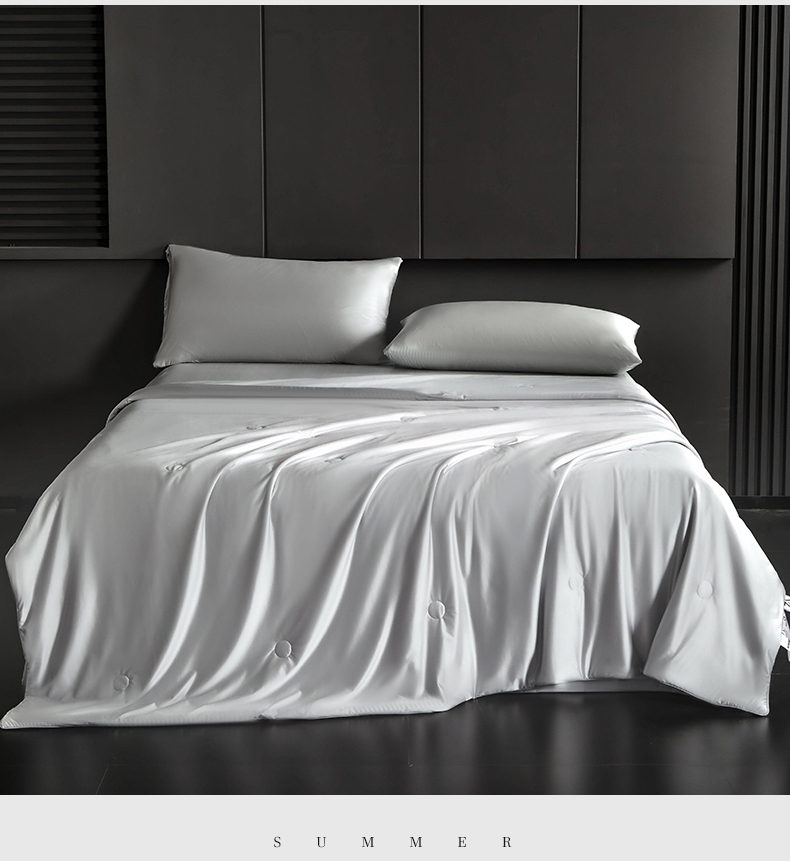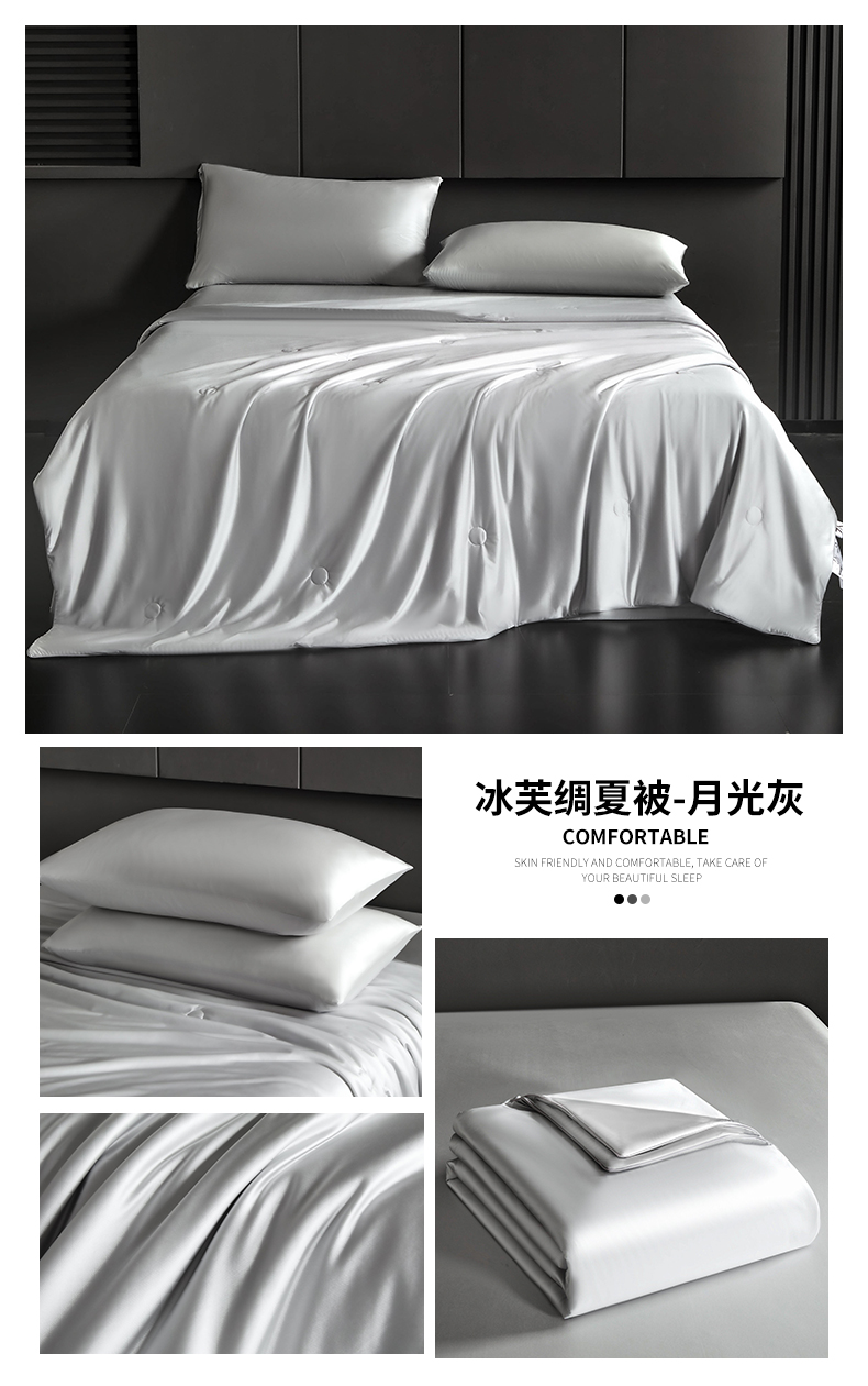 商品名称:雯豆家纺 2025夏季新品锦纶+氨纶高档冰丝凉感夏被空调被7A抗菌薄被芯 冰芙绸夏被-月光灰