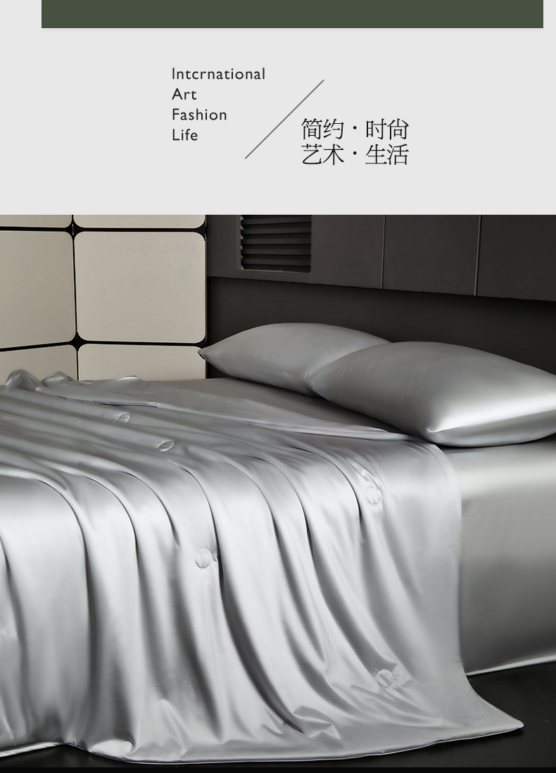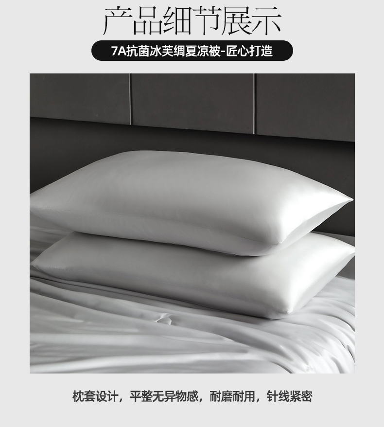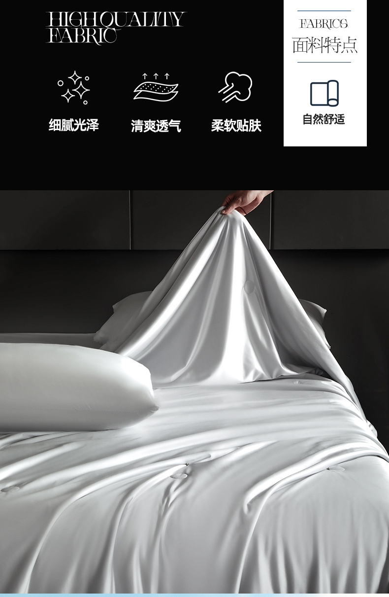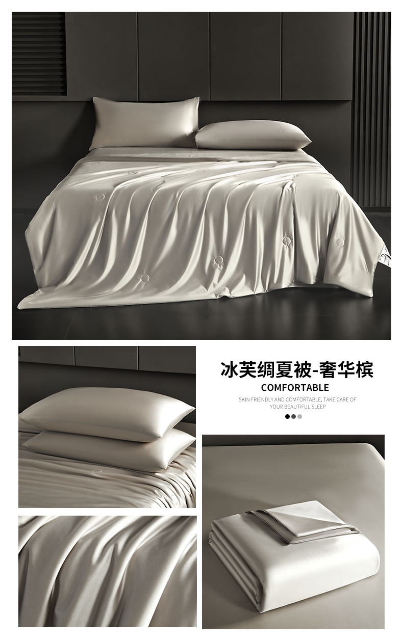 商品名称:雯豆家纺 2025夏季新品锦纶+氨纶高档冰丝凉感夏被空调被7A抗菌薄被芯 冰芙绸夏被-月光灰