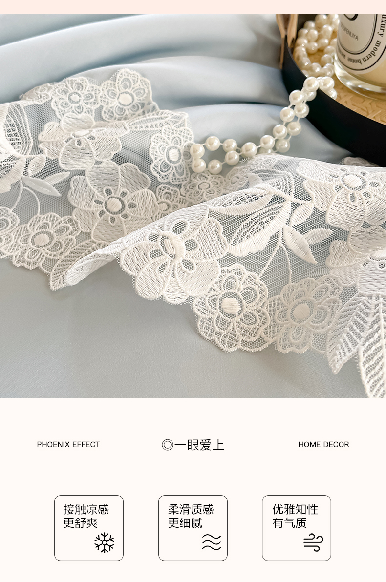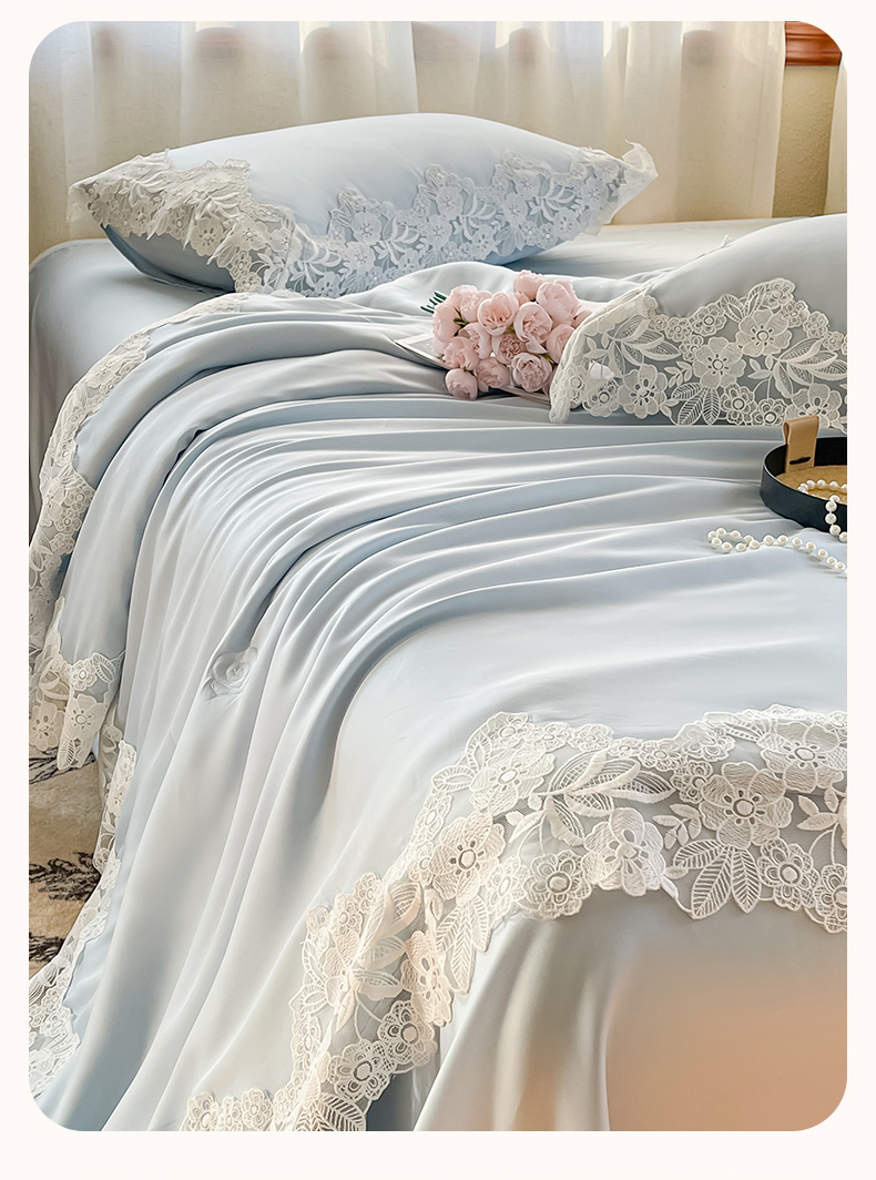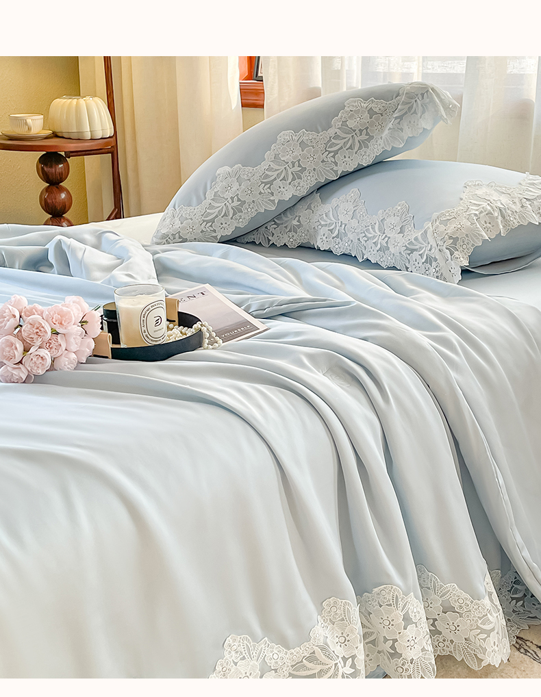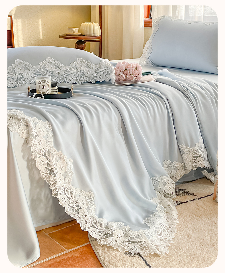 当前位置: 91家纺网 > 商品网购 > 床品套件 > 四件套 > 夏被四件套 > 雯豆家纺 2025夏季新品天丝蕾丝花边款夏被四件套夏天凉感薄被空调被 米娅-气泡蓝