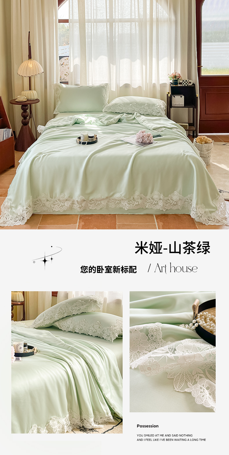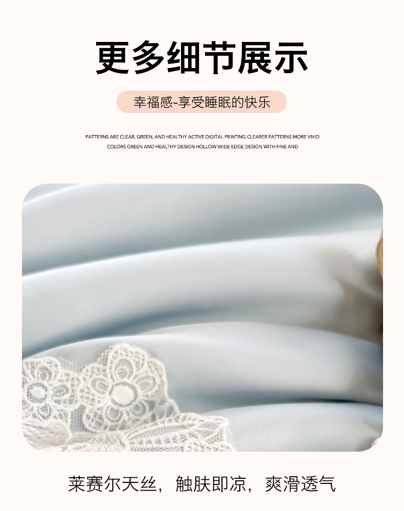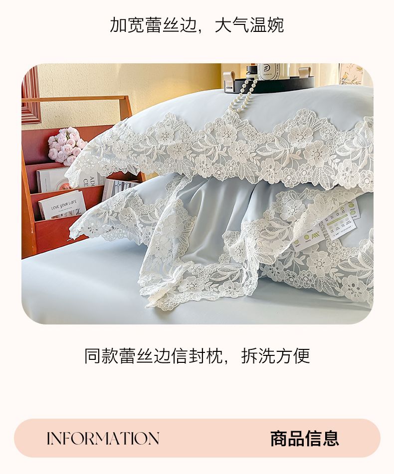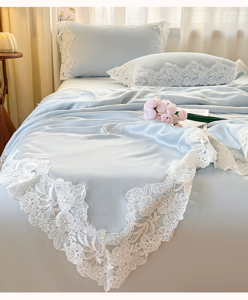 当前位置: 91家纺网 > 商品网购 > 床品套件 > 四件套 > 夏被四件套 > 雯豆家纺 2025夏季新品天丝蕾丝花边款夏被四件套夏天凉感薄被空调被 米娅-气泡蓝