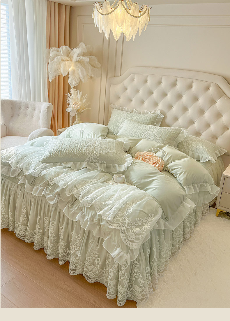 当前位置: 91家纺网 > 商品网购 > 床品套件 > 四件套 > 其它四件套 > 恋尚 2025新款木凉淳浪漫蕾丝床裙四件套-米朵 米朵-水绿