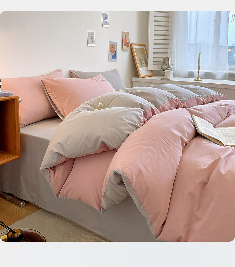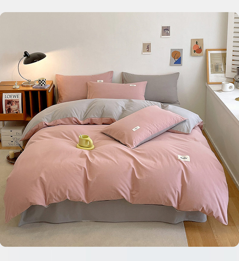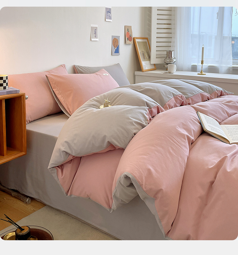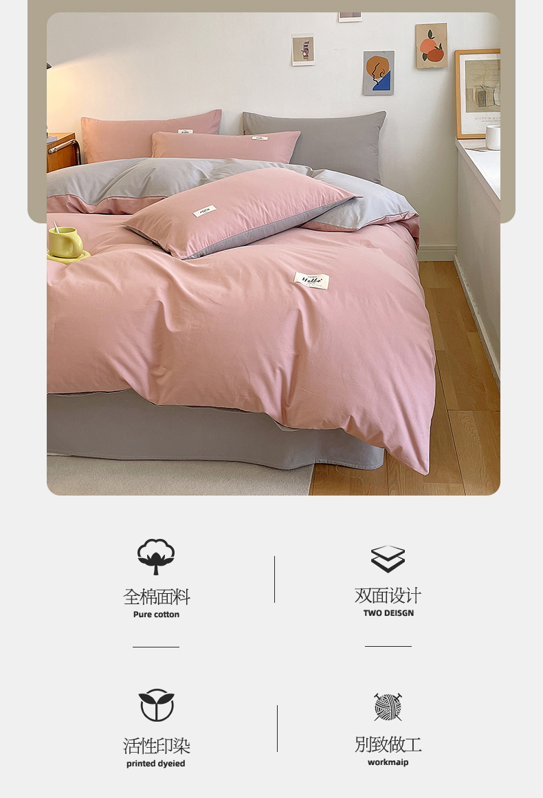 (总)798家纺 2025新款全棉双拼纯色良品四件套,碧绿+奶白,布鲁蓝+梧桐灰,豆绿+芍药粉,奶白+豆绿,奶白+青草绿,浅夏紫+芍药粉,肉肉粉+班尼咖,肉肉粉+千夏紫,肉肉粉+小雏菊,石灰+梧桐灰