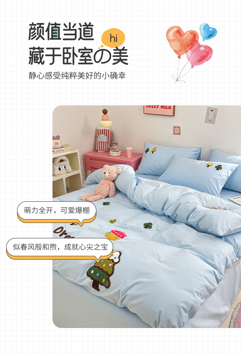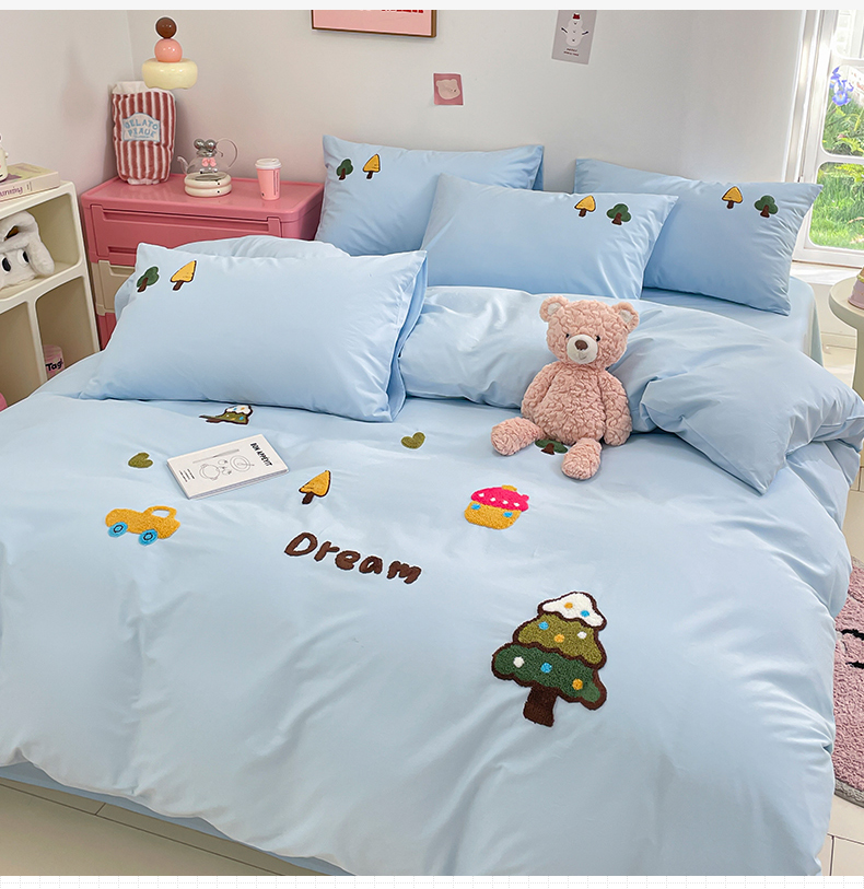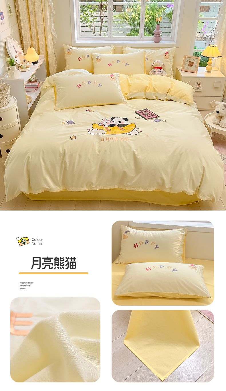 (总)(买家秀 热款花型 不断货)母婴级A类ins风水洗棉四件套水洗棉毛巾绣四件套水洗棉床笠四件套提花绣花,幸运小狗,开心熊猫,小红帽,小兔音乐会