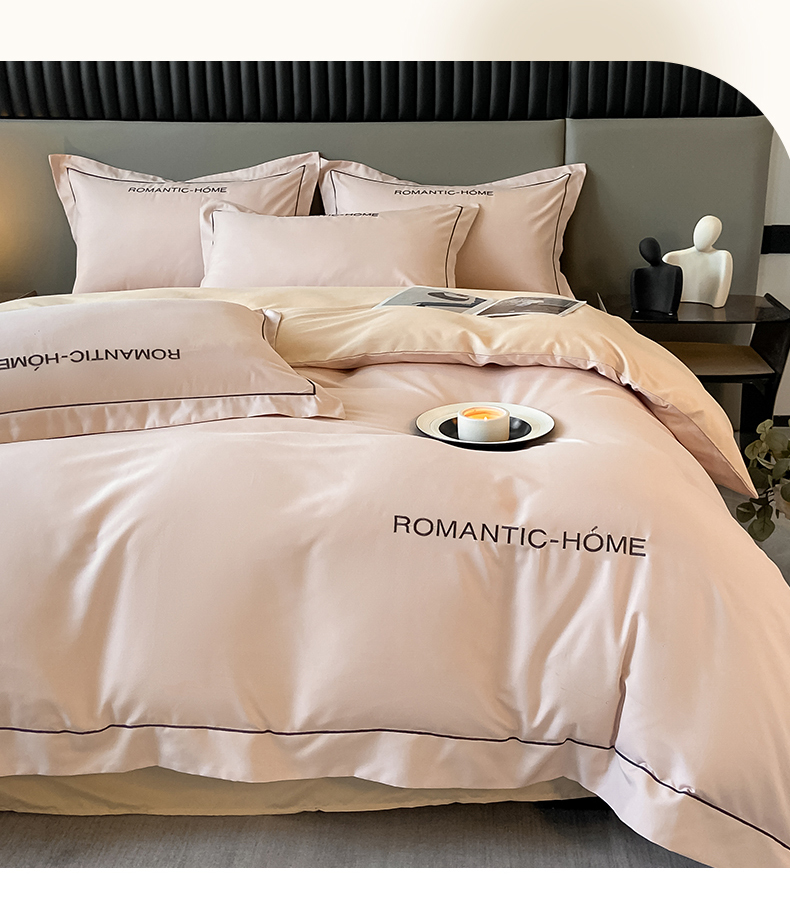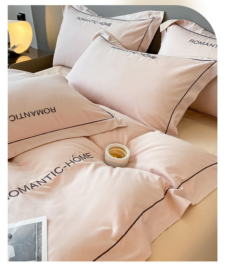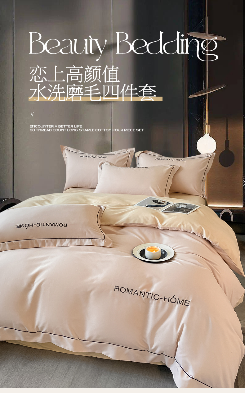 2025新款轻奢家简约水洗磨毛四件套-艾文 香叶粉-奶茶