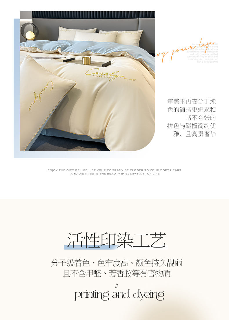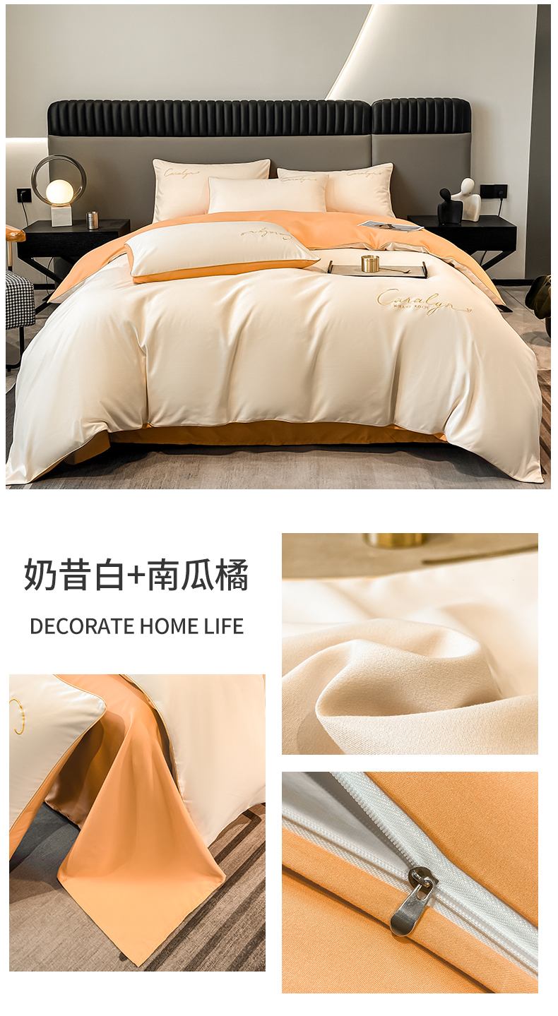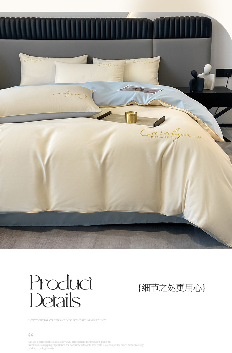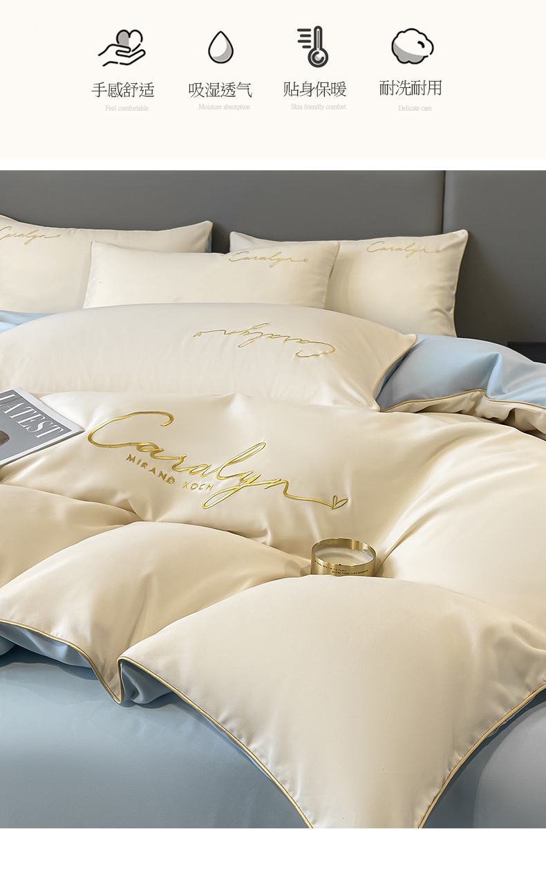 商品名称:2025新款水洗磨毛刺绣四件套-慕斯 奶昔白+风铃兰