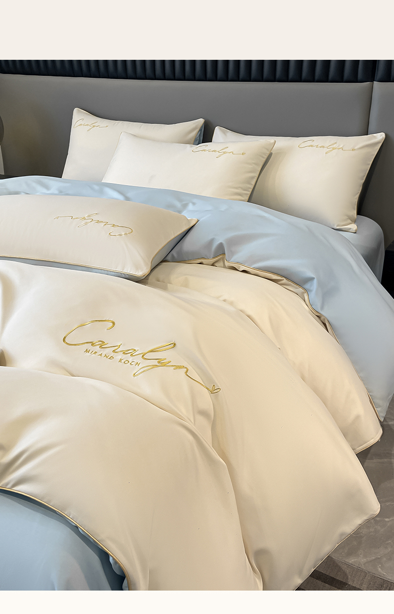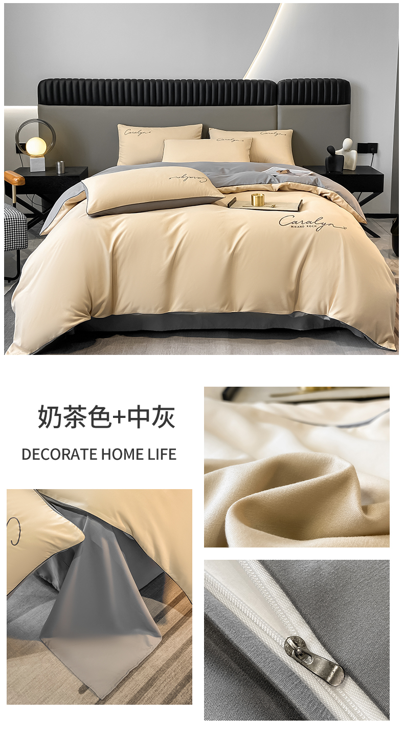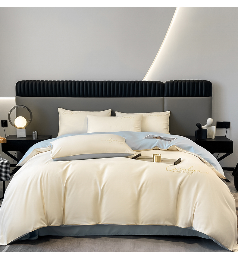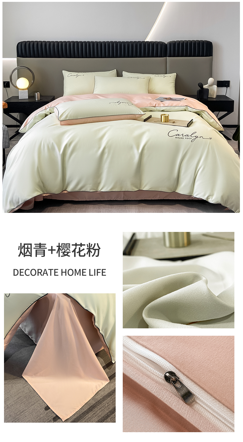 商品名称:2025新款水洗磨毛刺绣四件套-慕斯 奶昔白+风铃兰