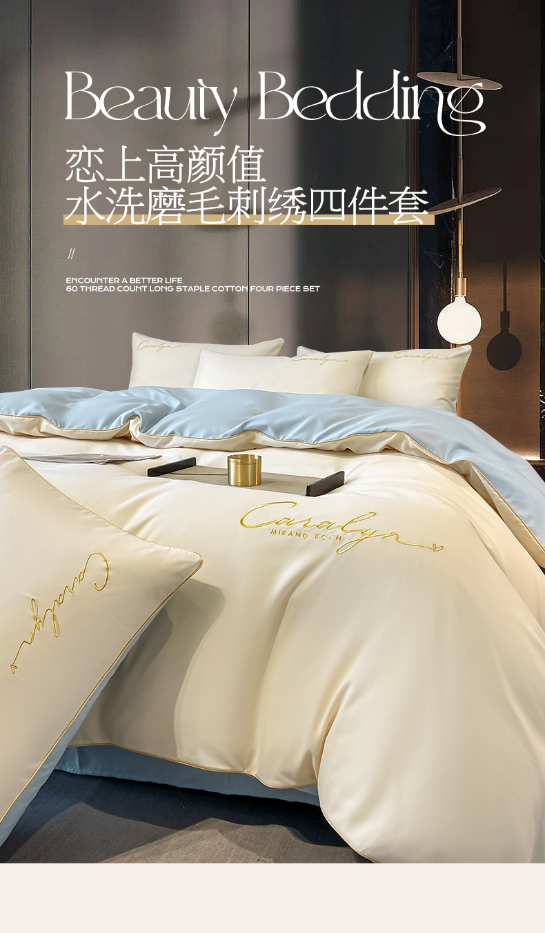 2025新款水洗磨毛刺绣四件套-慕斯 奶昔白+风铃兰