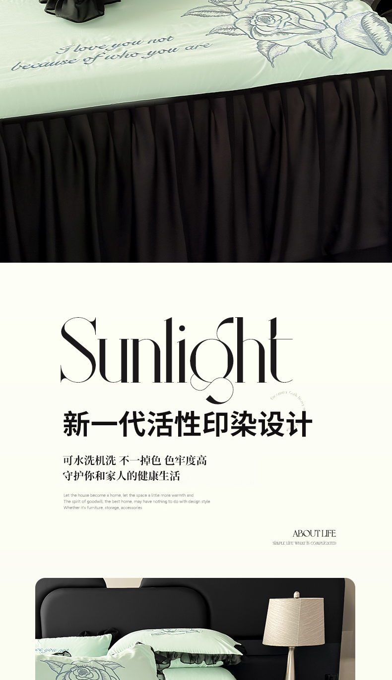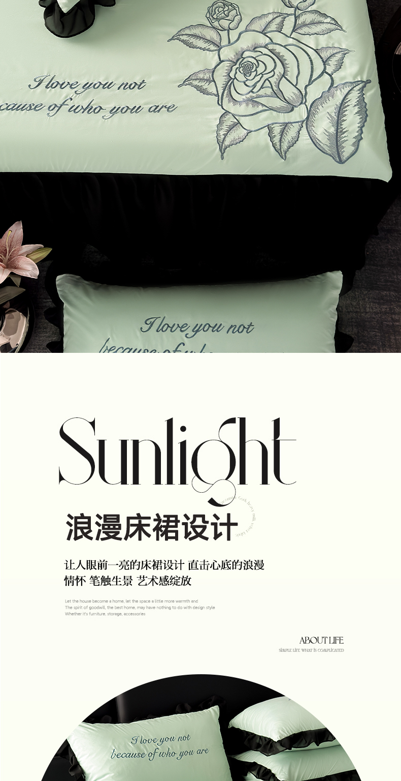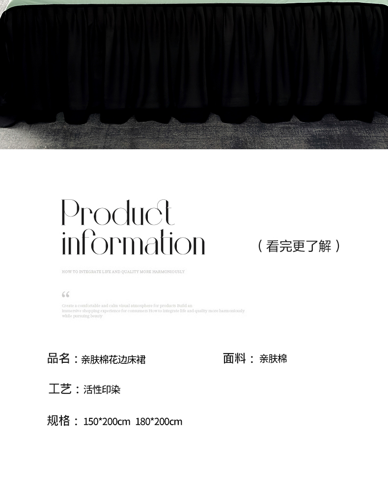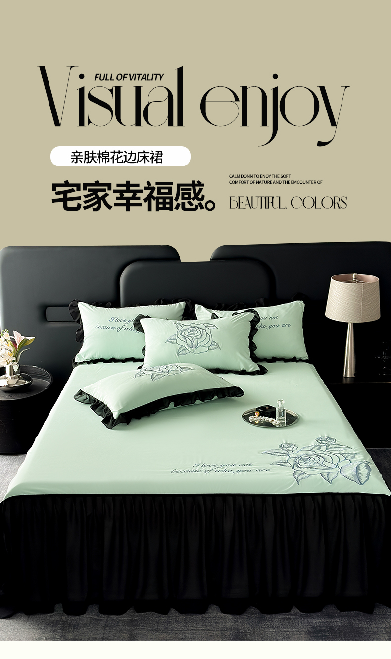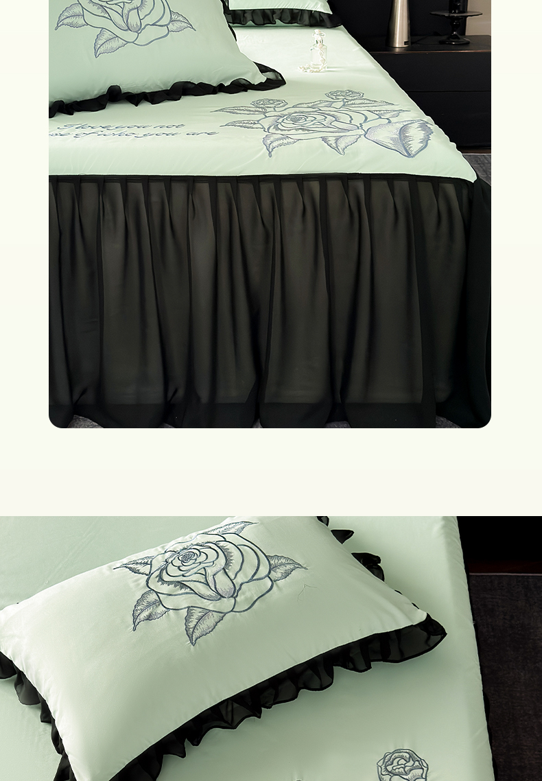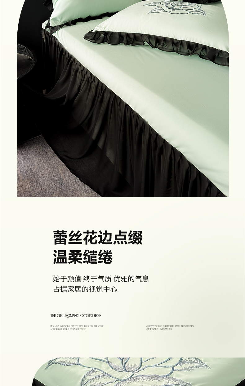 商品名称:豪美鑫 2025新款赫本风亲肤棉花边单床裙 赫本风床裙-浅绿色