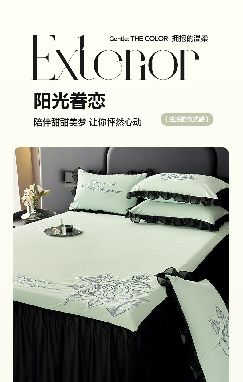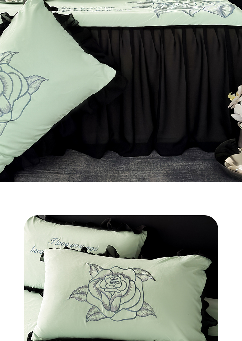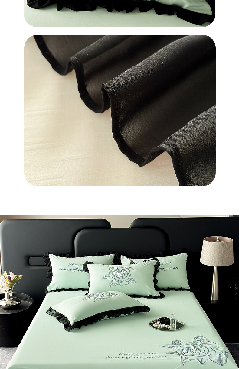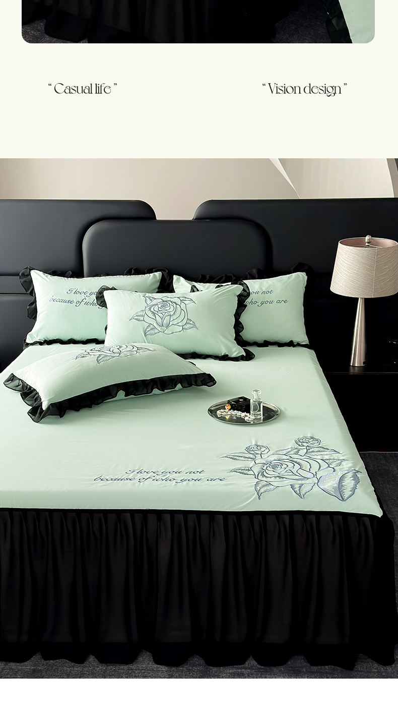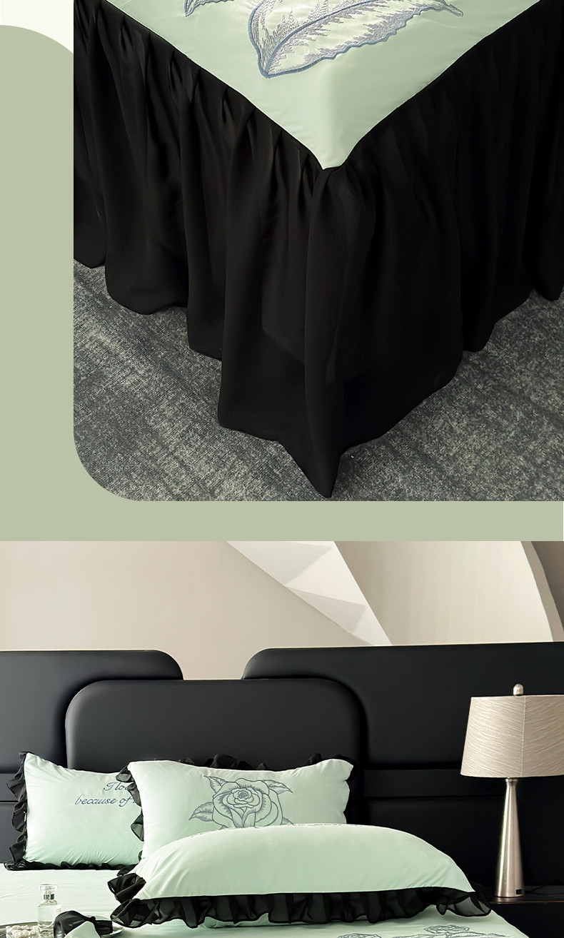 豪美鑫 2025新款赫本风亲肤棉花边单床裙 赫本风床裙-浅绿色