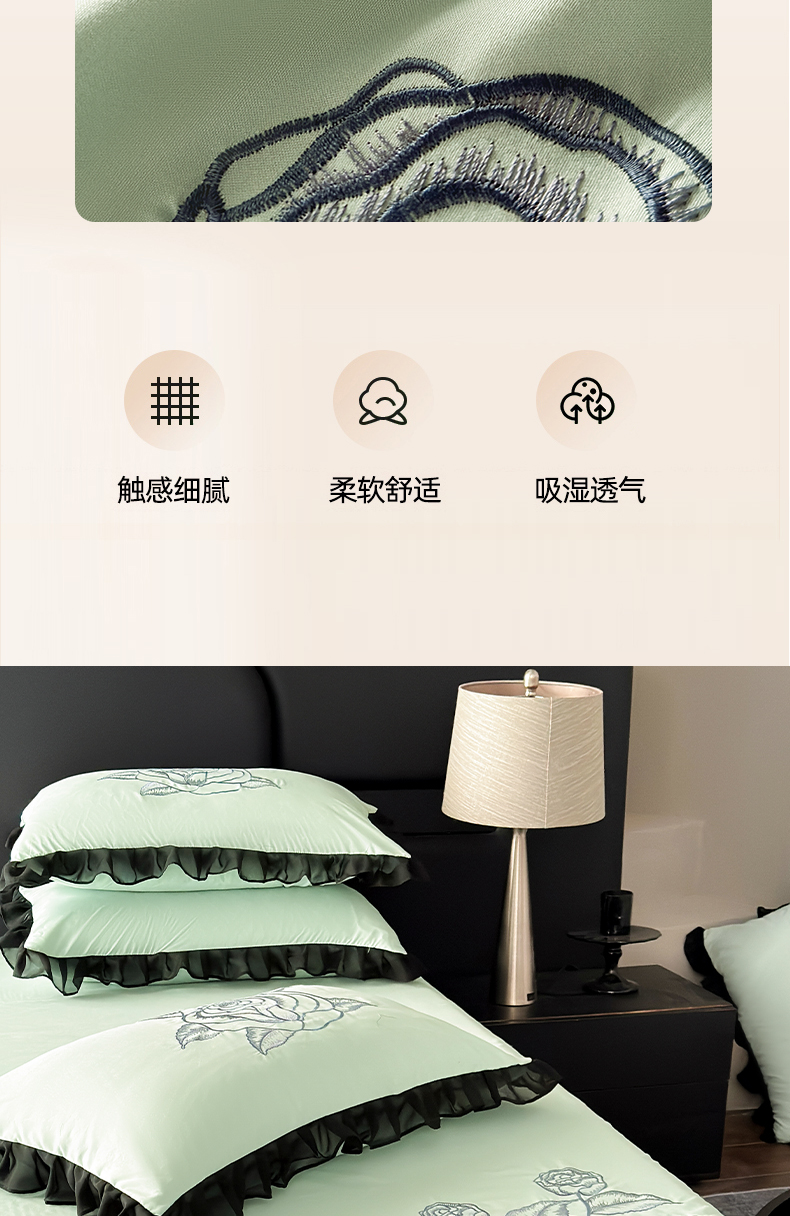 (总)豪美鑫 2025新款亲肤棉蕾丝花边四件套-爱丽丝系列,爱丽丝-粉玉,爱丽丝-湖水绿,爱丽丝-卡其,爱丽丝-奶油黄,爱丽丝-珍珠白