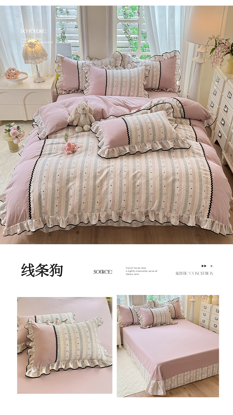大麦家纺 2025新款韩式花边亲肤棉四件套 线条狗