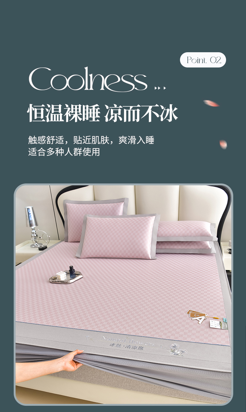 (总)2023新款超精密冰丝席-小斜纹系列-床笠款藤席凉席竹席,粉色,蓝色,绿色,银灰