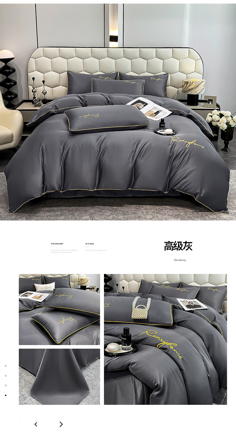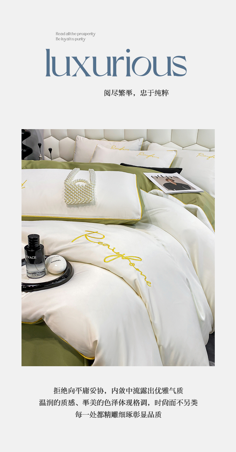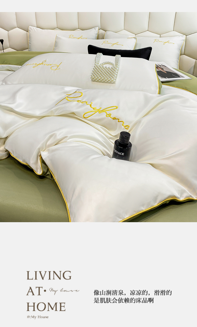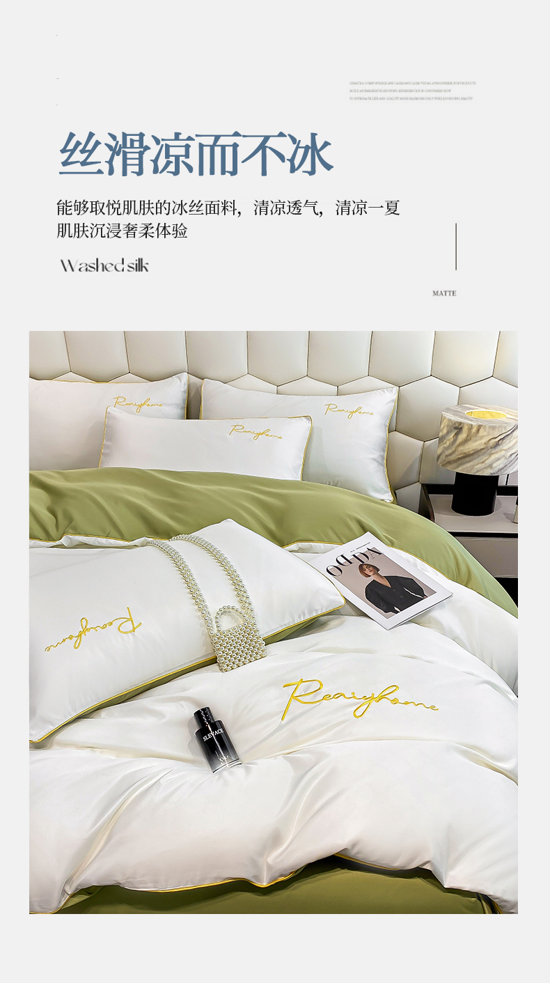 (总)富宁2025新款水洗真丝时光字母冰丝刺绣四件套