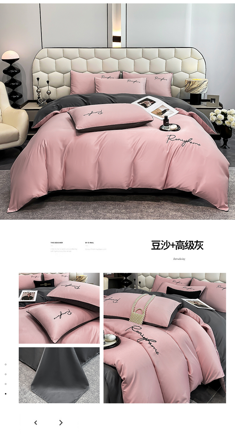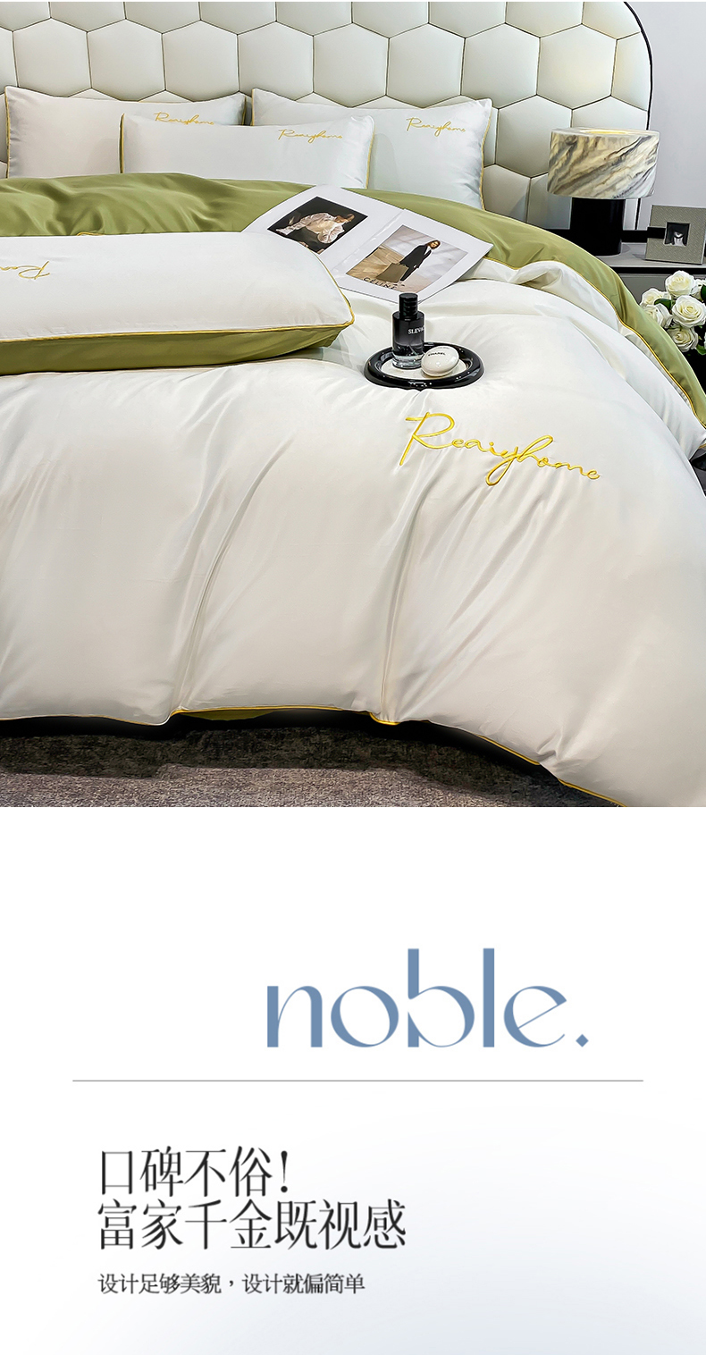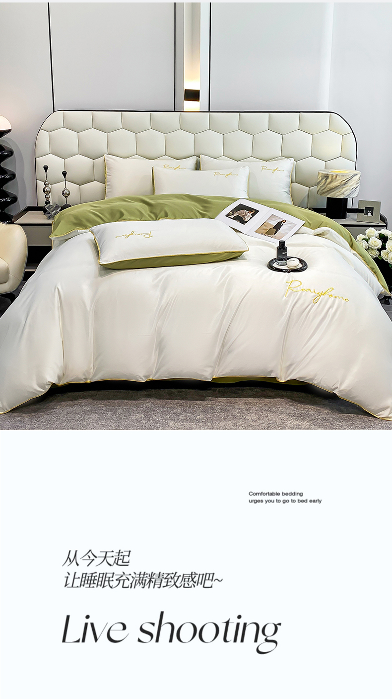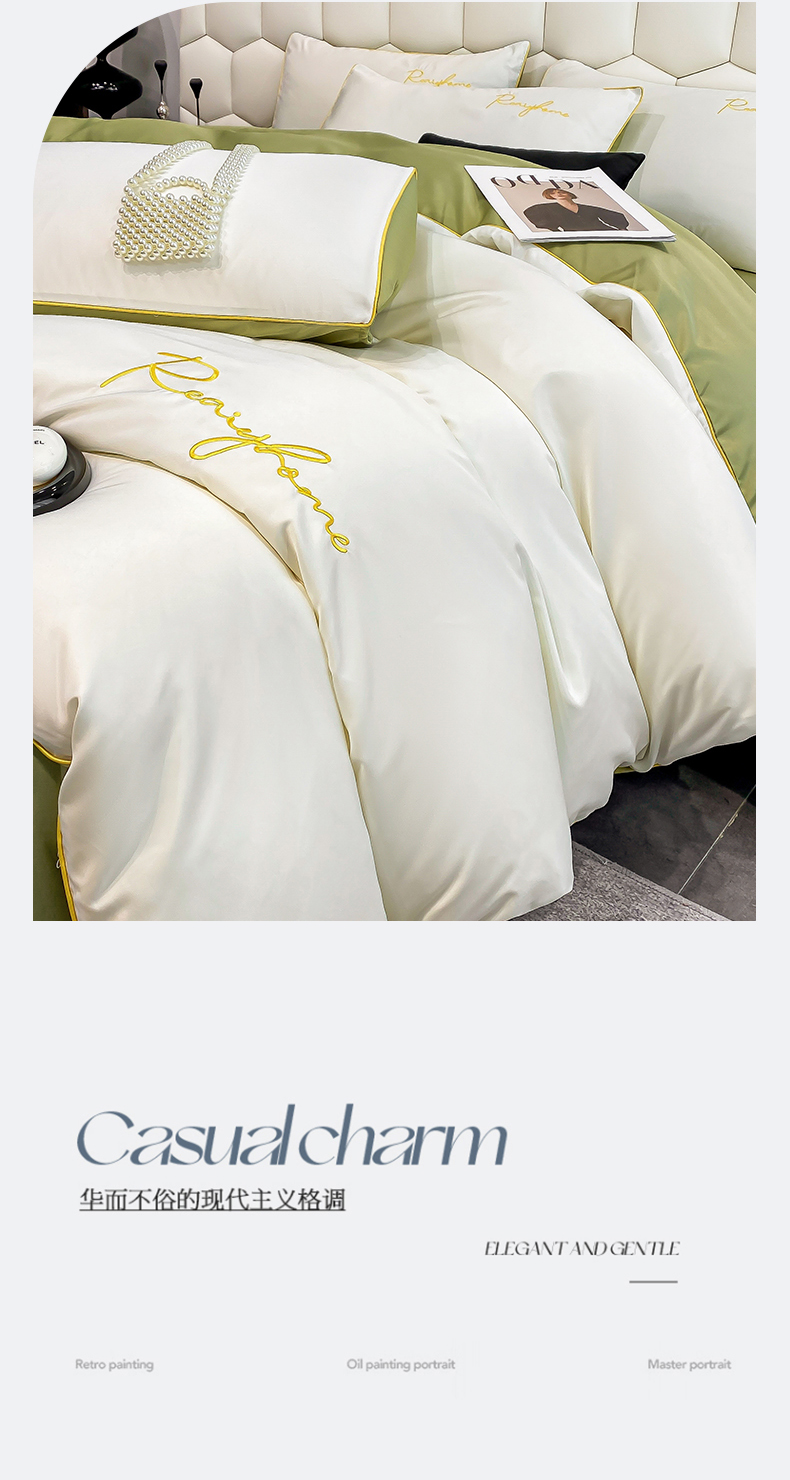 (总)富宁2025新款水洗真丝时光字母冰丝刺绣四件套