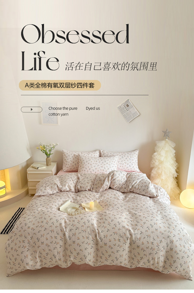 当前位置: 91家纺网 > 商品网购 > 床品套件 > 四件套 > 全棉普通四件套 > 塞纳 2026新款.全棉有氧双层纱四件套-场景一 追觅-黄