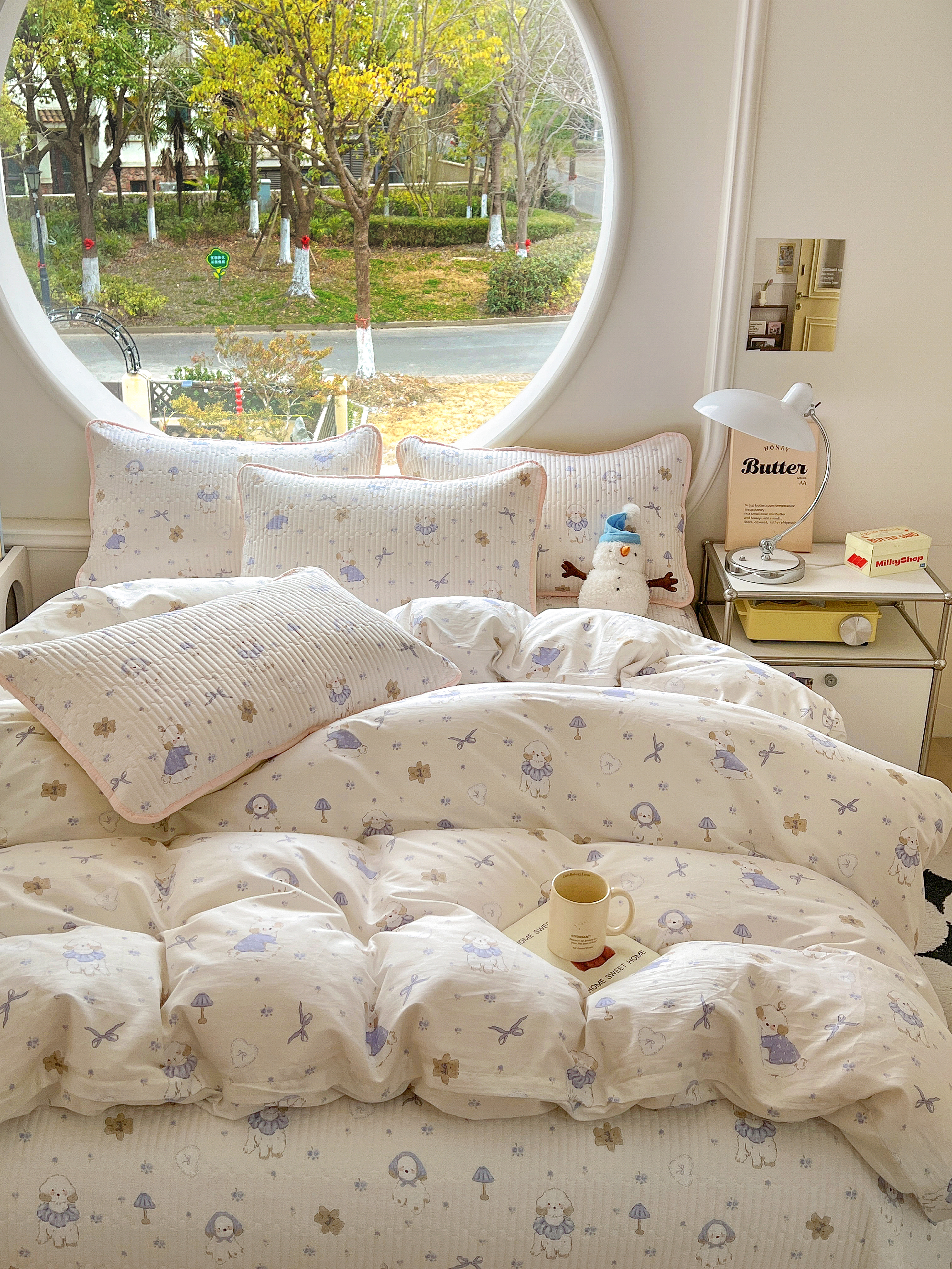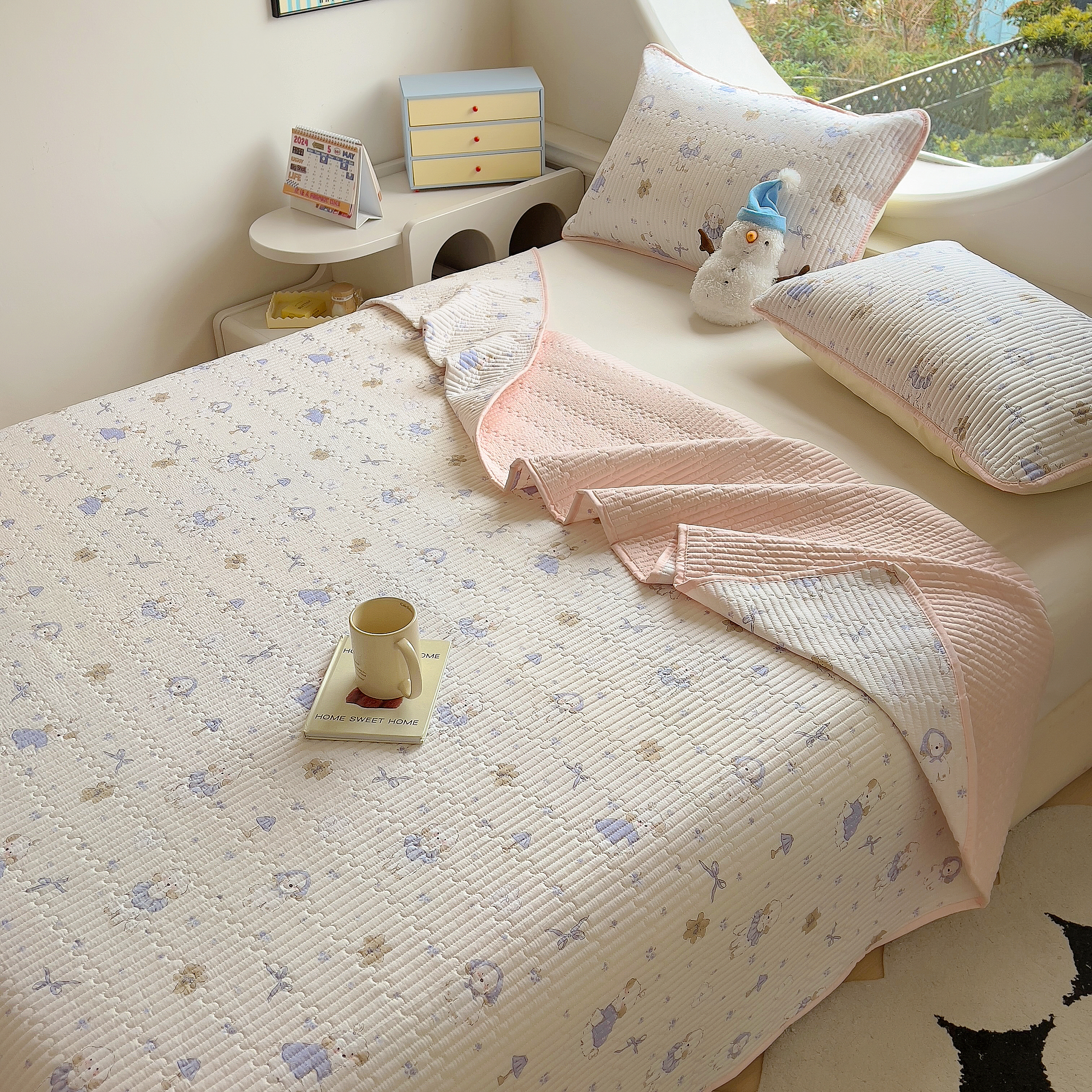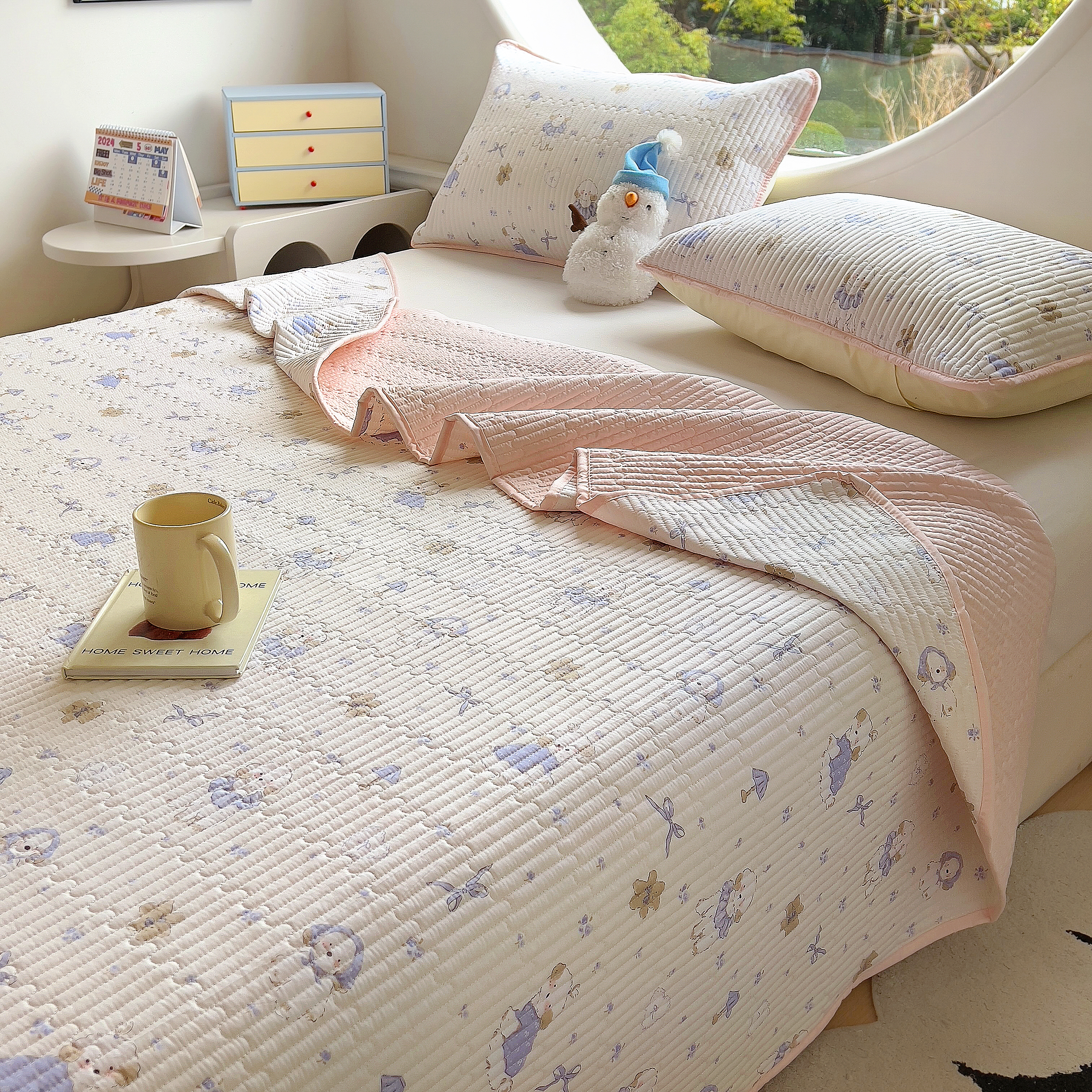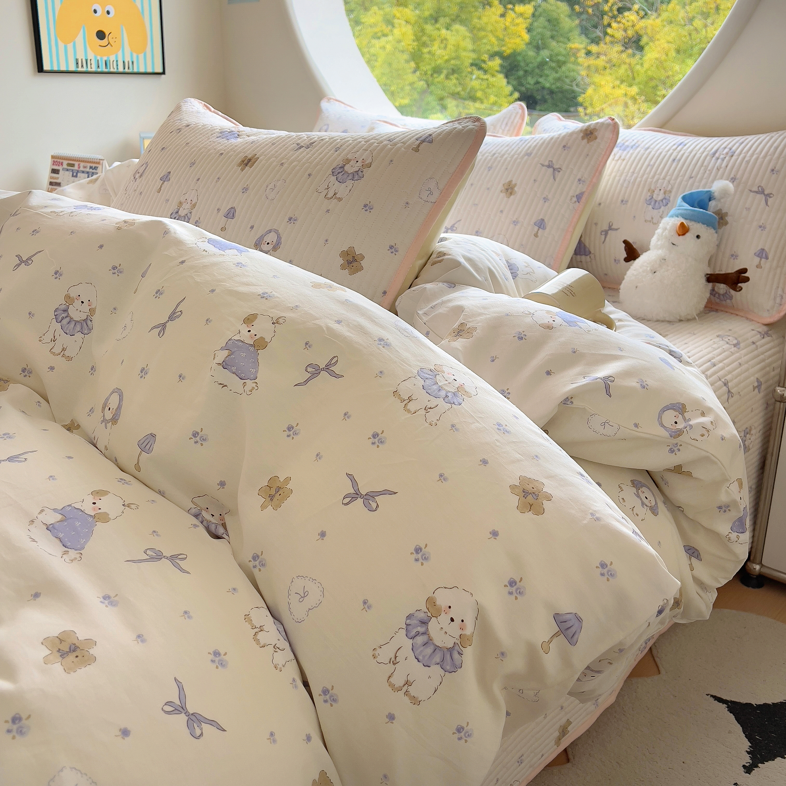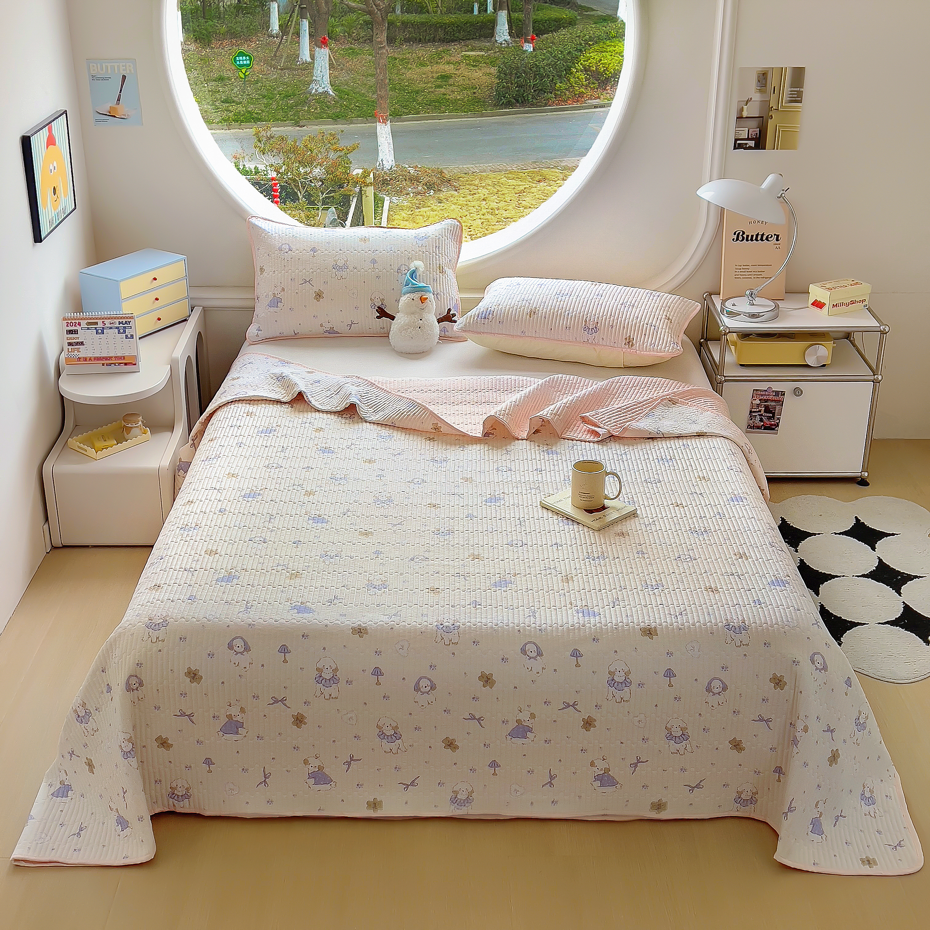 昊川家纺 2025新款时尚印花全棉床盖单被套四件套学生床盖套件 泡泡浴