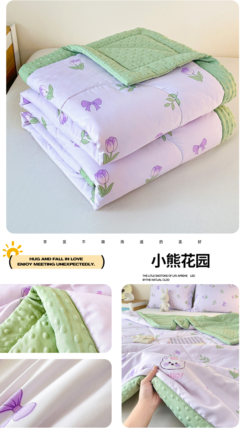 (总)壹张床 2025新款A类水洗棉3D豆豆夏被子被芯(提供买家秀),朵拉花园,欢乐熊,开心小兔,卢比小象,小熊花园,一束温柔,郁金香小兔,竹子熊猫