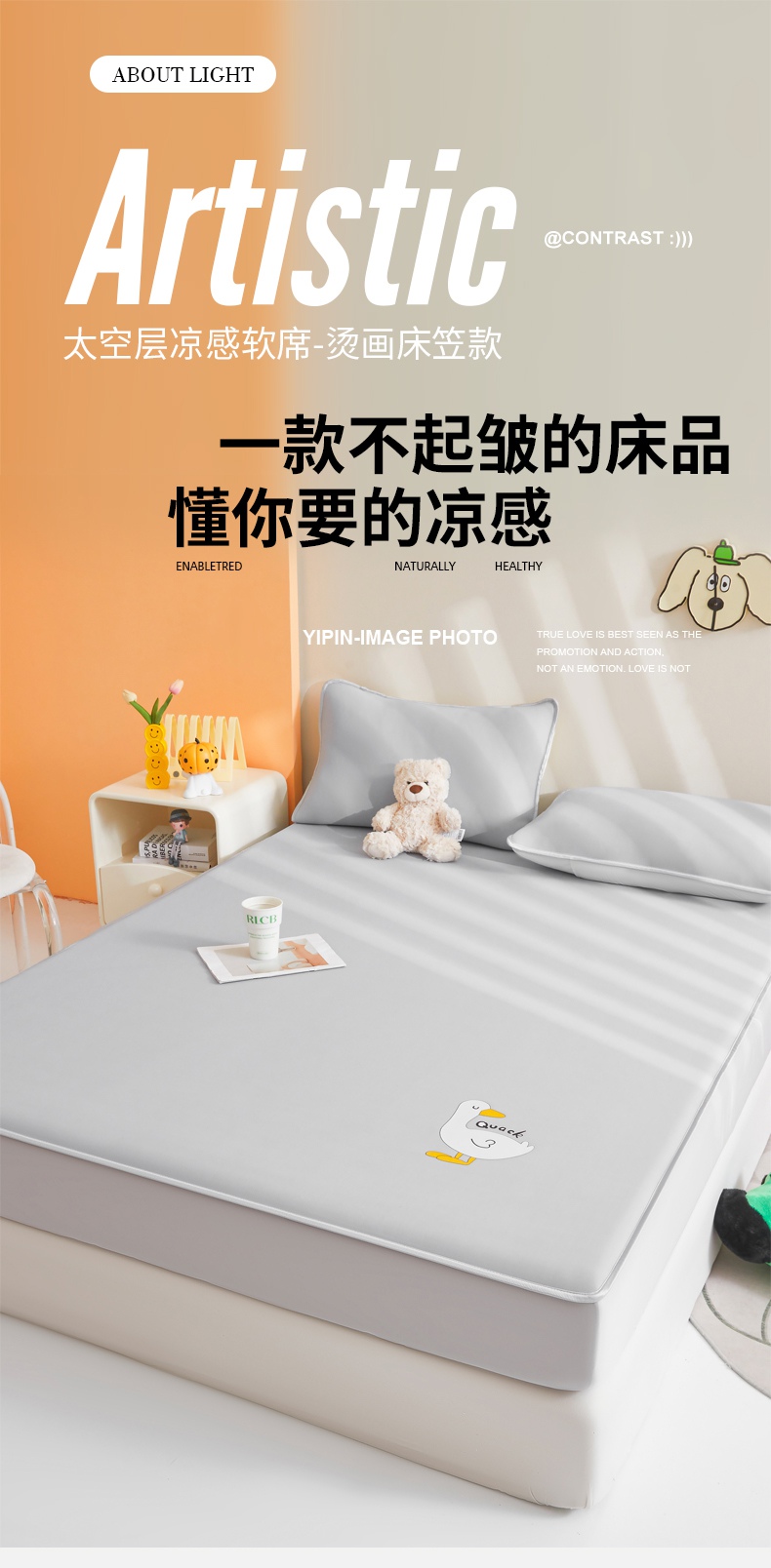 当前位置: 91家纺网 > 商品网购 > 床上用品 > 凉席 > 其他凉席 > 2025春夏新款独家研发太空层凉感鸭冰丝烫画软凉席床笠款 凉感鸭-浅灰
